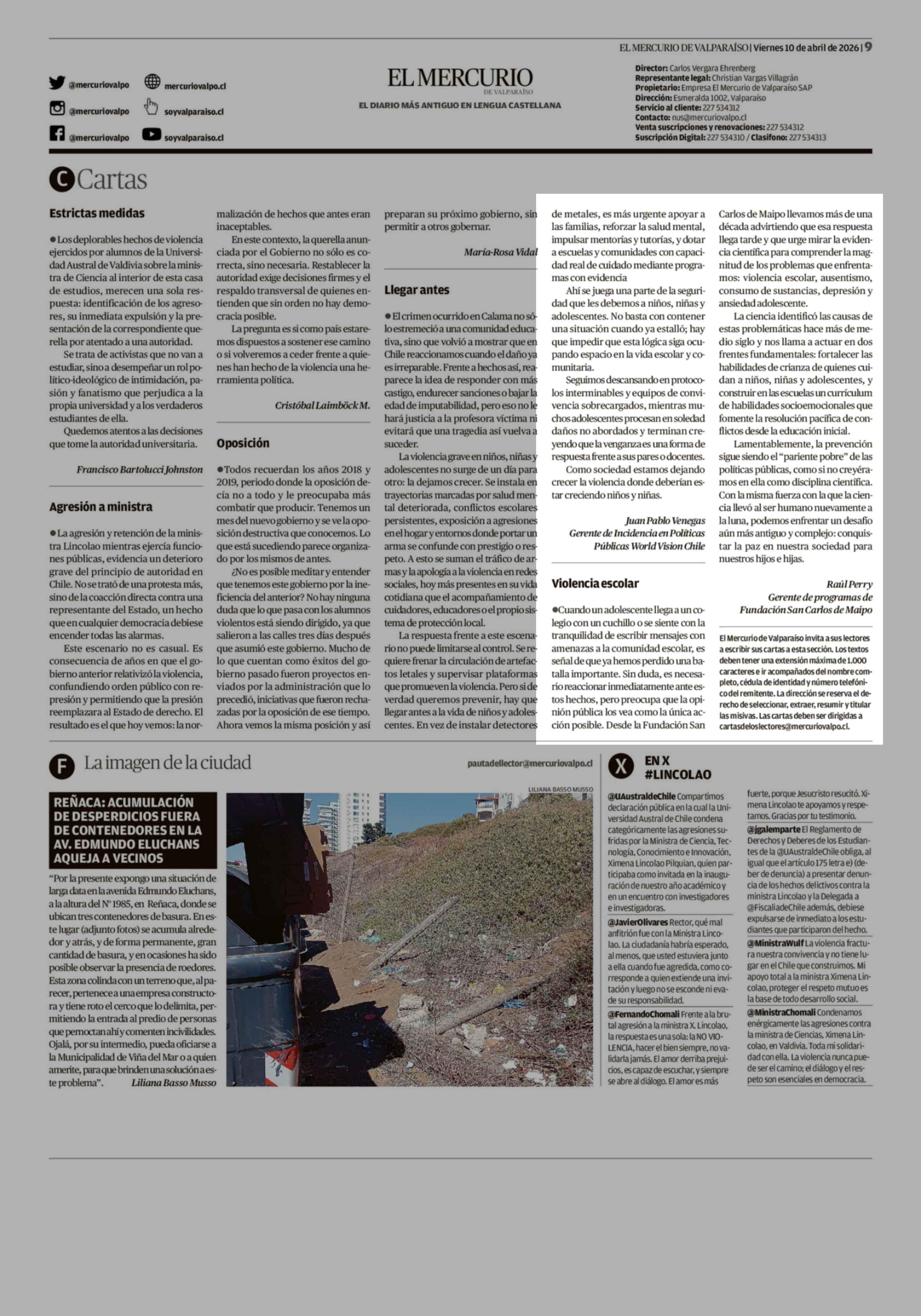 Fuente: El Mercurio de Valparaíso (El Mercurio de Valparaiso) Página(s): 9