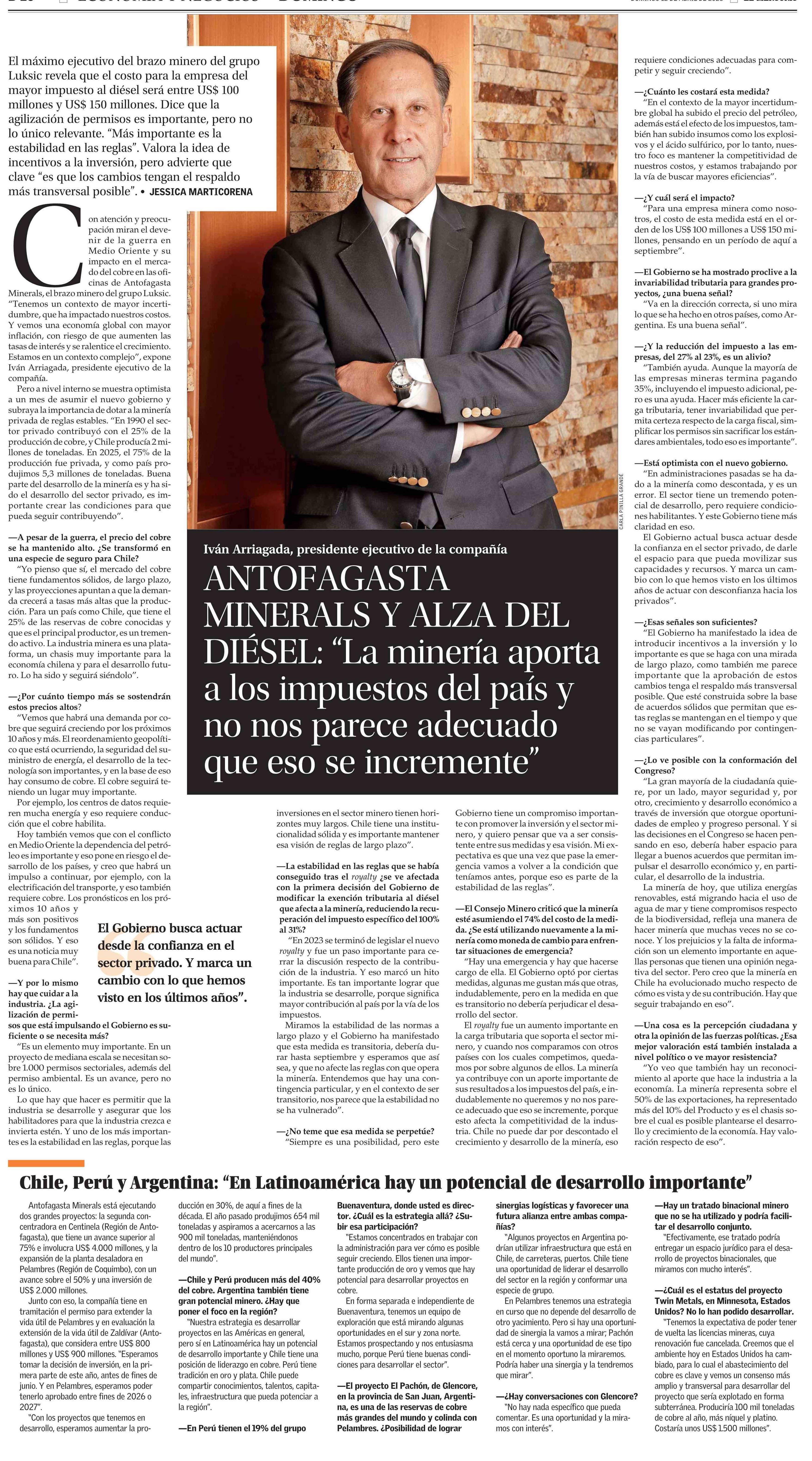 Título: ANTOFAGASTA MINERALS Y ALZA DEL DIÉSEL: “La minería aporta a los impuestos del país y no nos parece adecuado que eso se incremente”