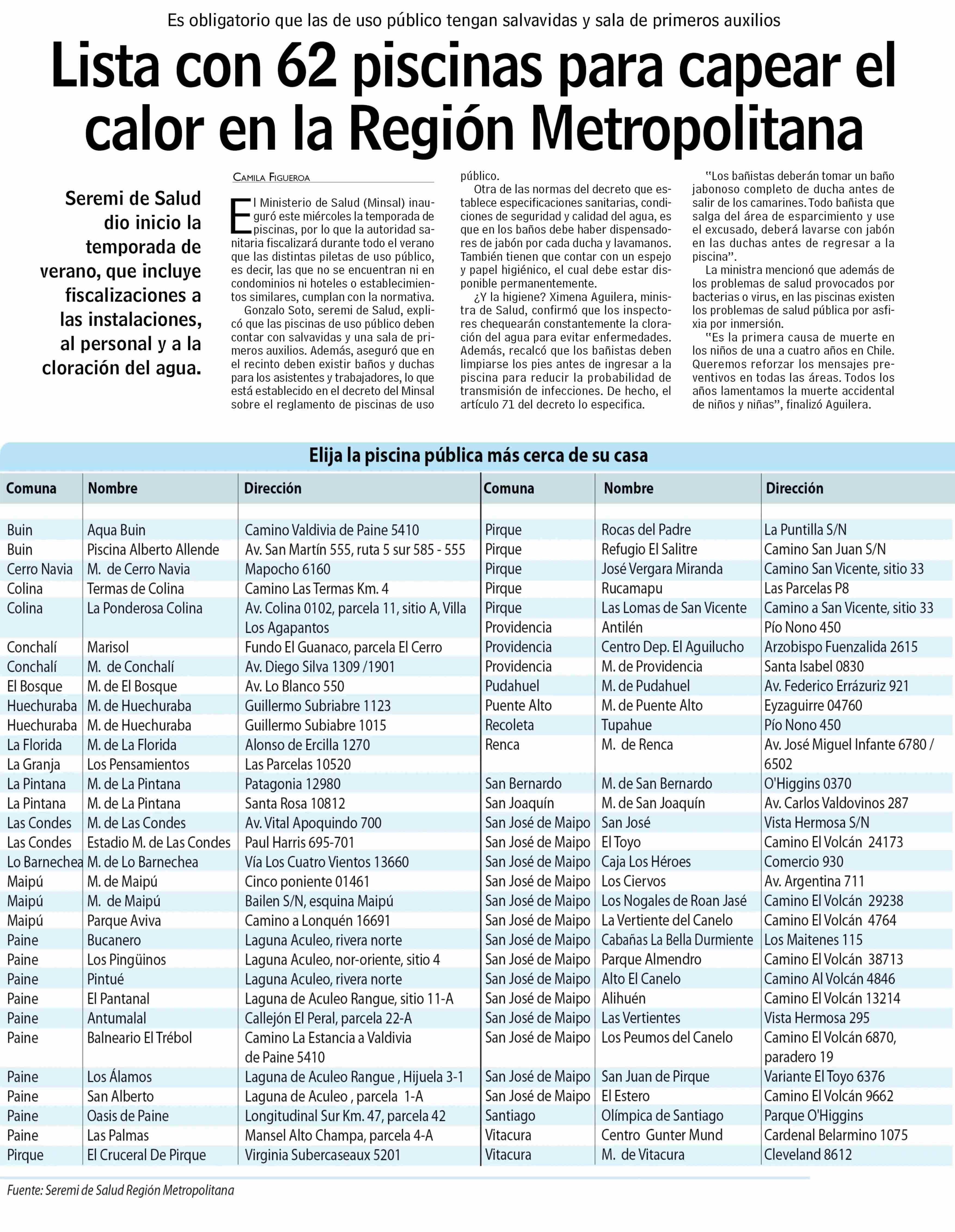 Lista con 62 piscinas para capear el calor en la Región Metropolitana 28-11-2024 Las Últimas Noticias |