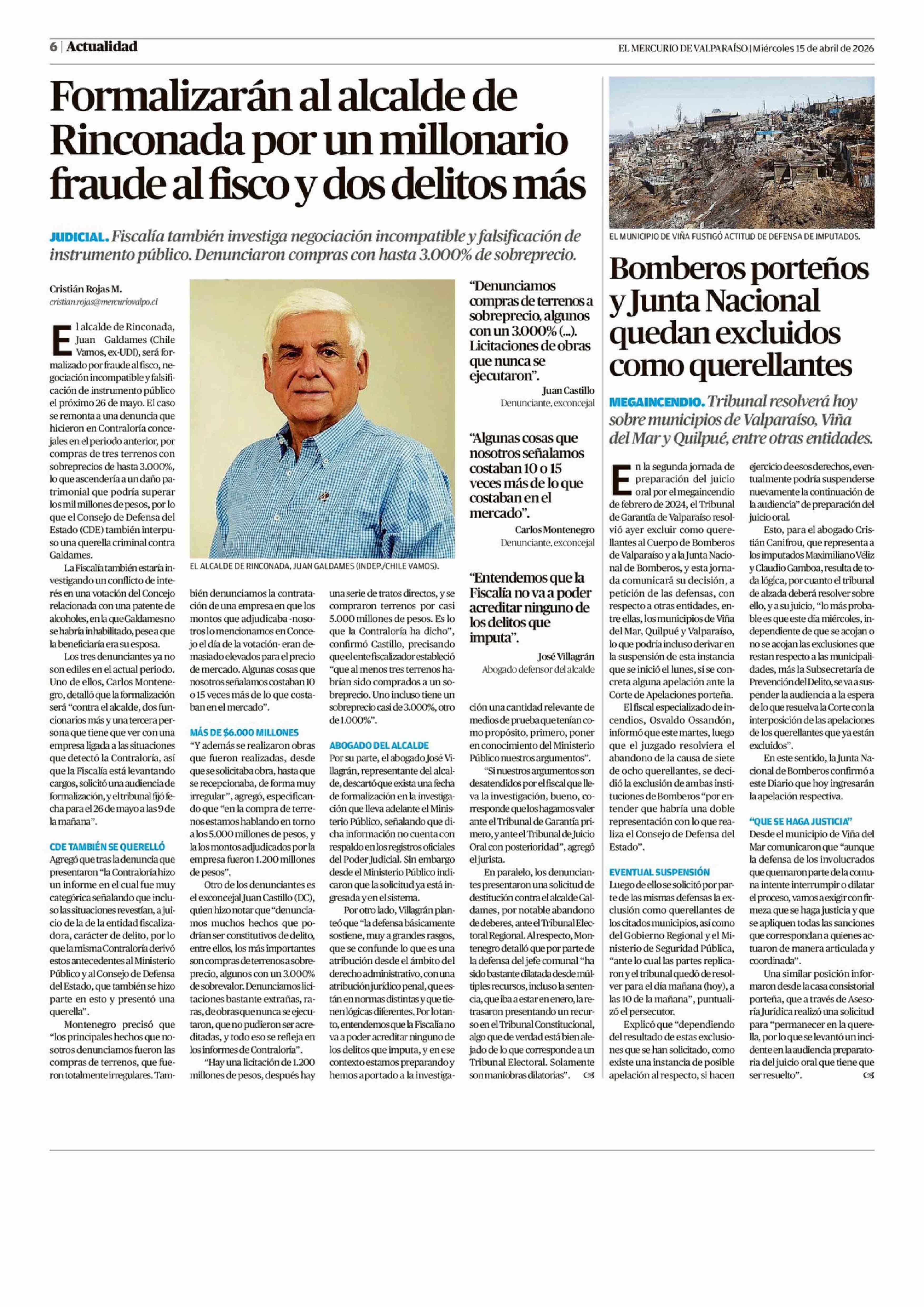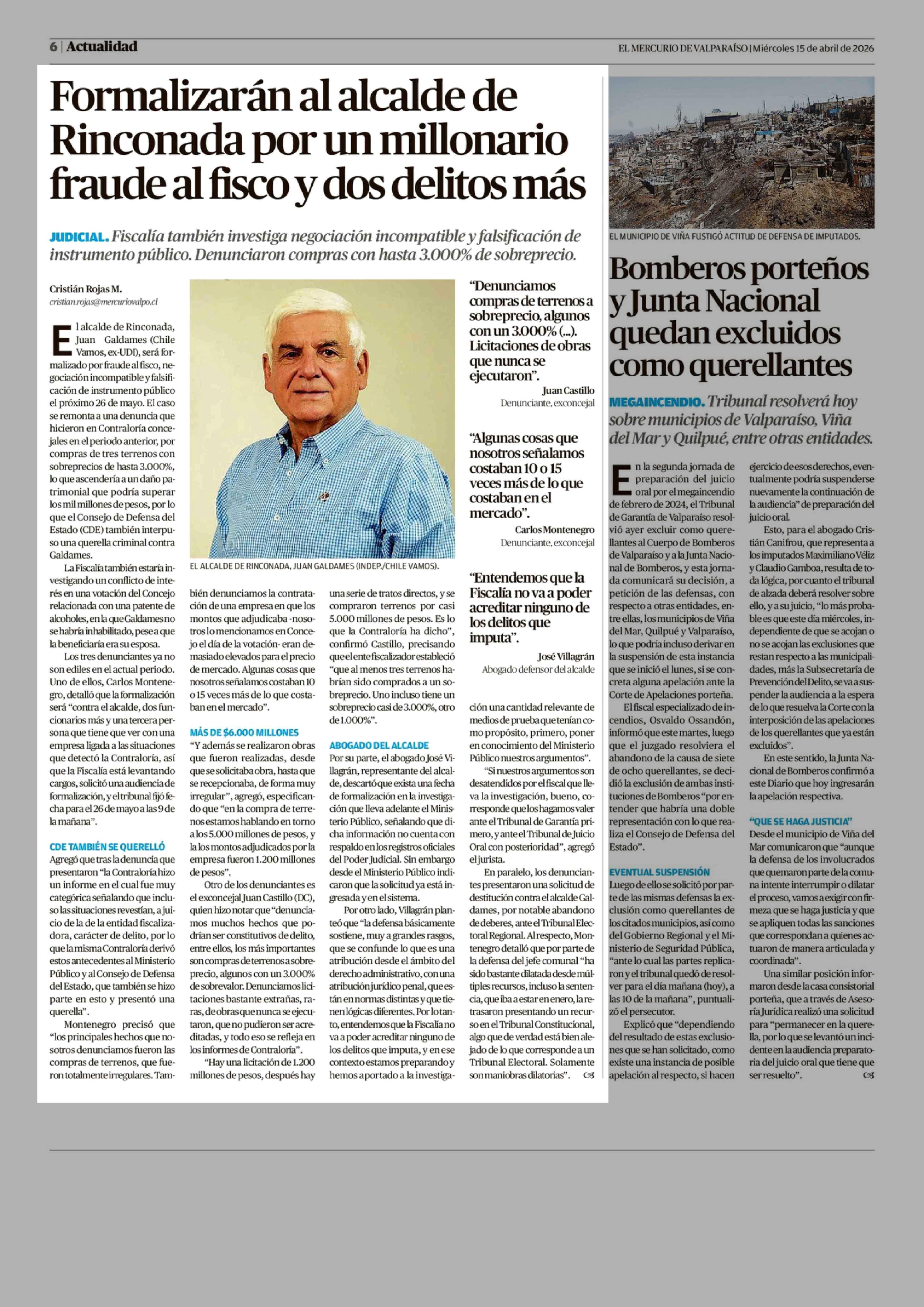Formalizarán al alcalde de Rinconada por un millonario fraude al fisco y dos delitos más 15-04-2026 El Mercurio de Valparaíso |