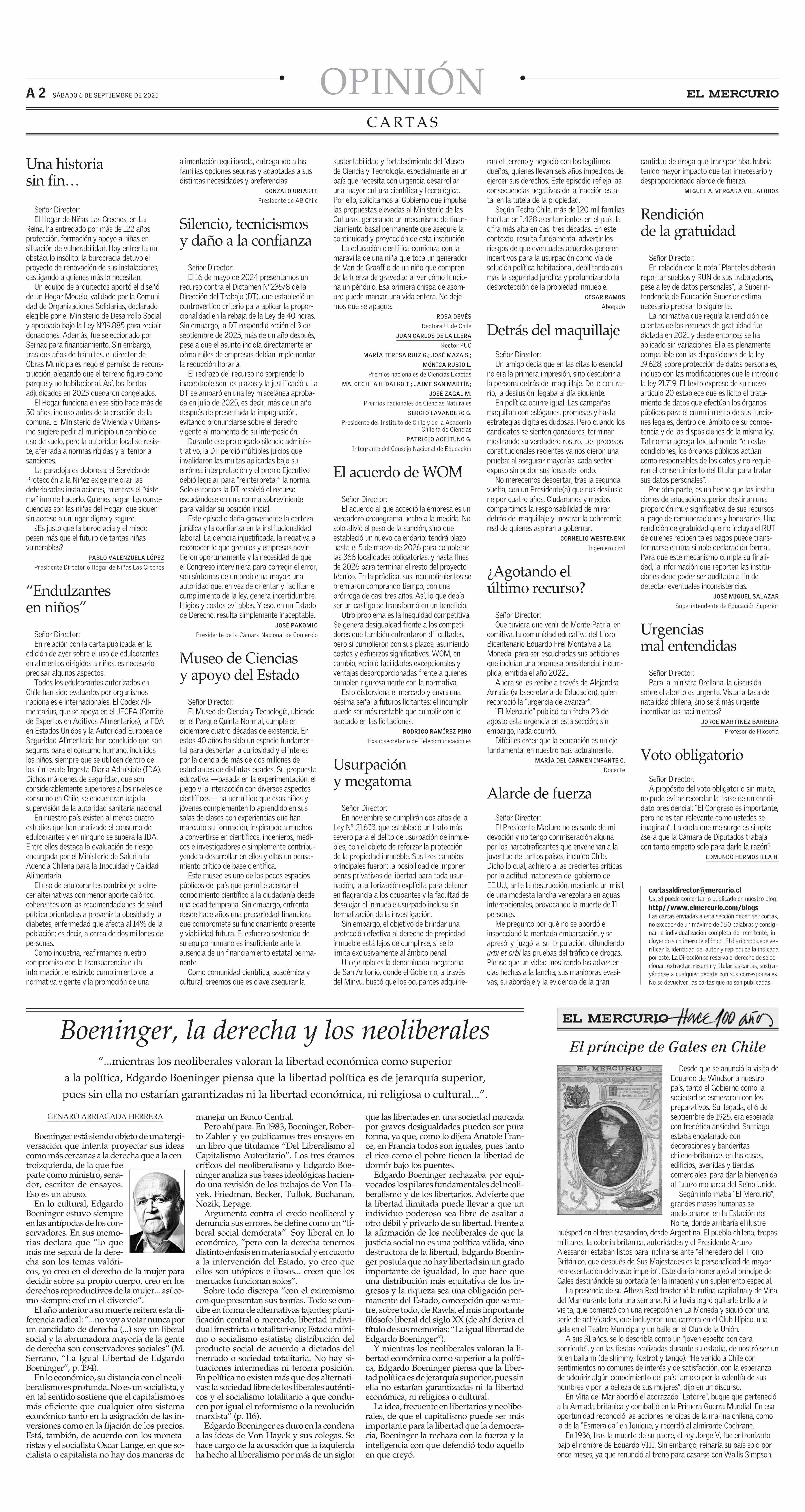 Silencio, tecnicismos y daño a la confianza 06-09-2025 El Mercurio |