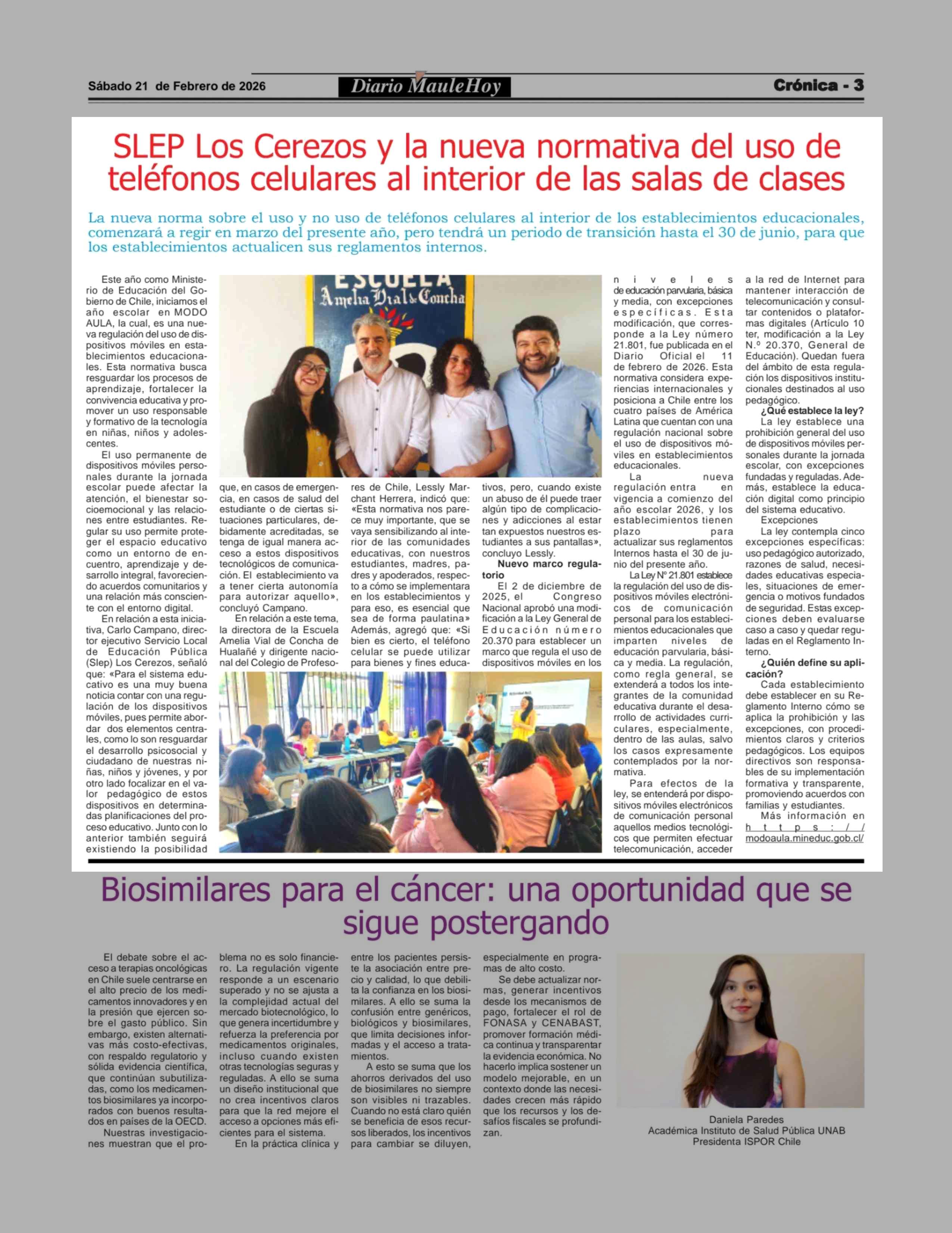 Título: SLEP Los Cerezos y la nueva normativa del uso de teléfonos celulares al interior de las salas de clases