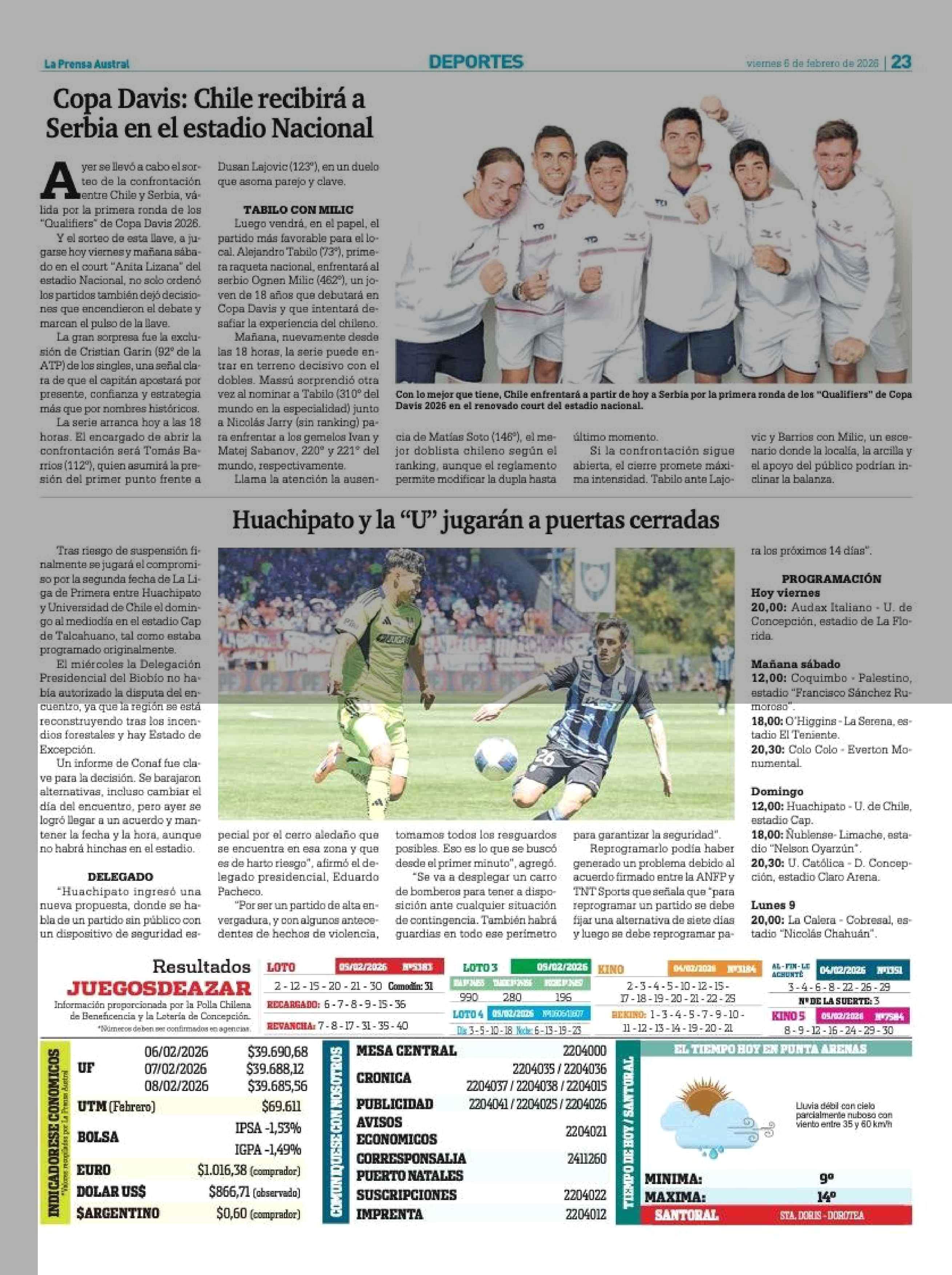 Fecha: 06-02-2026 Sector: Noticia general Región: Región de Magallanes y de la Antártica Chilena