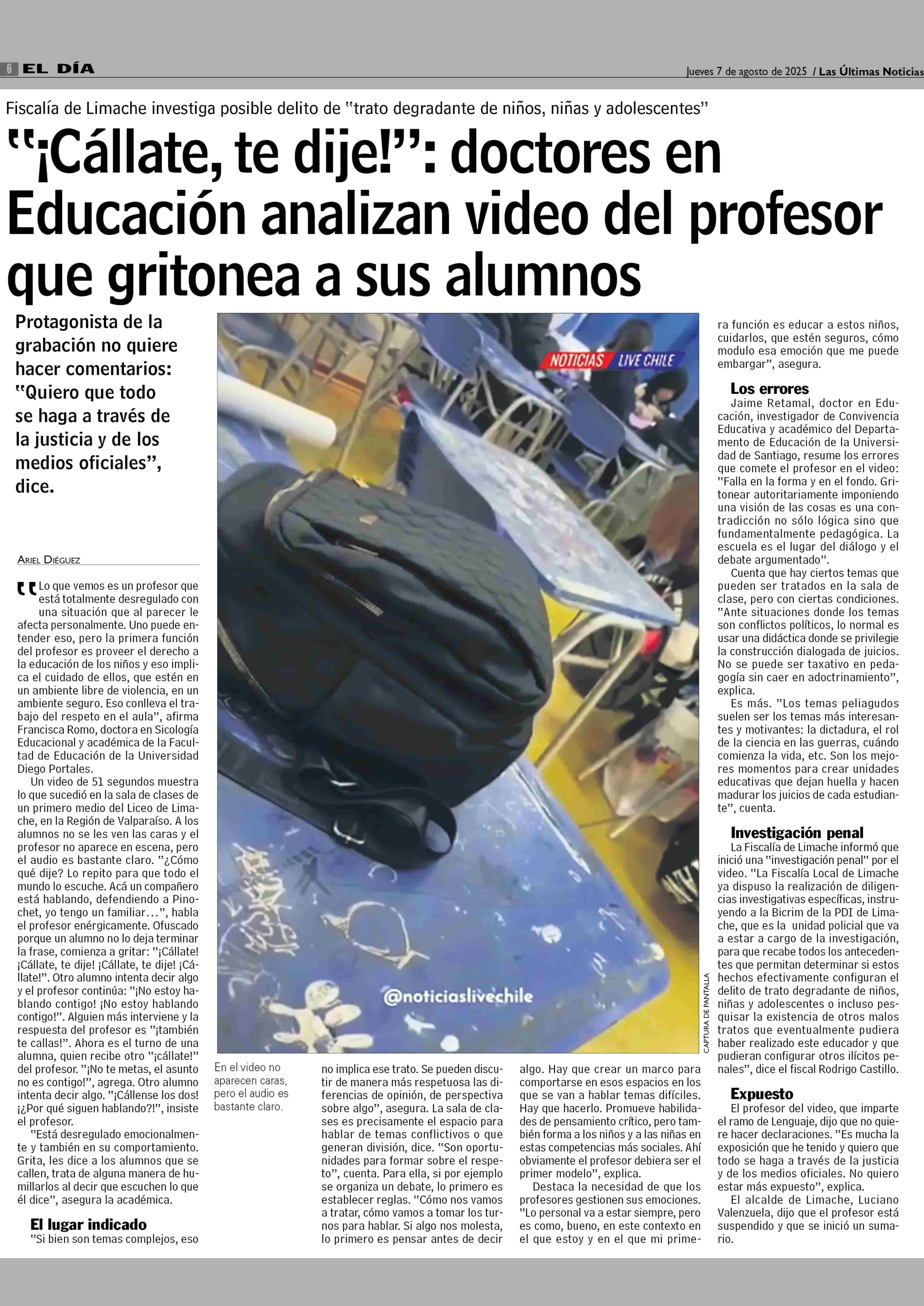 “¡Cállate, te dije!”: doctores en Educación analizan video del profesor que gritonea a sus alumnos 07-08-2025 Las Últimas Noticias |
