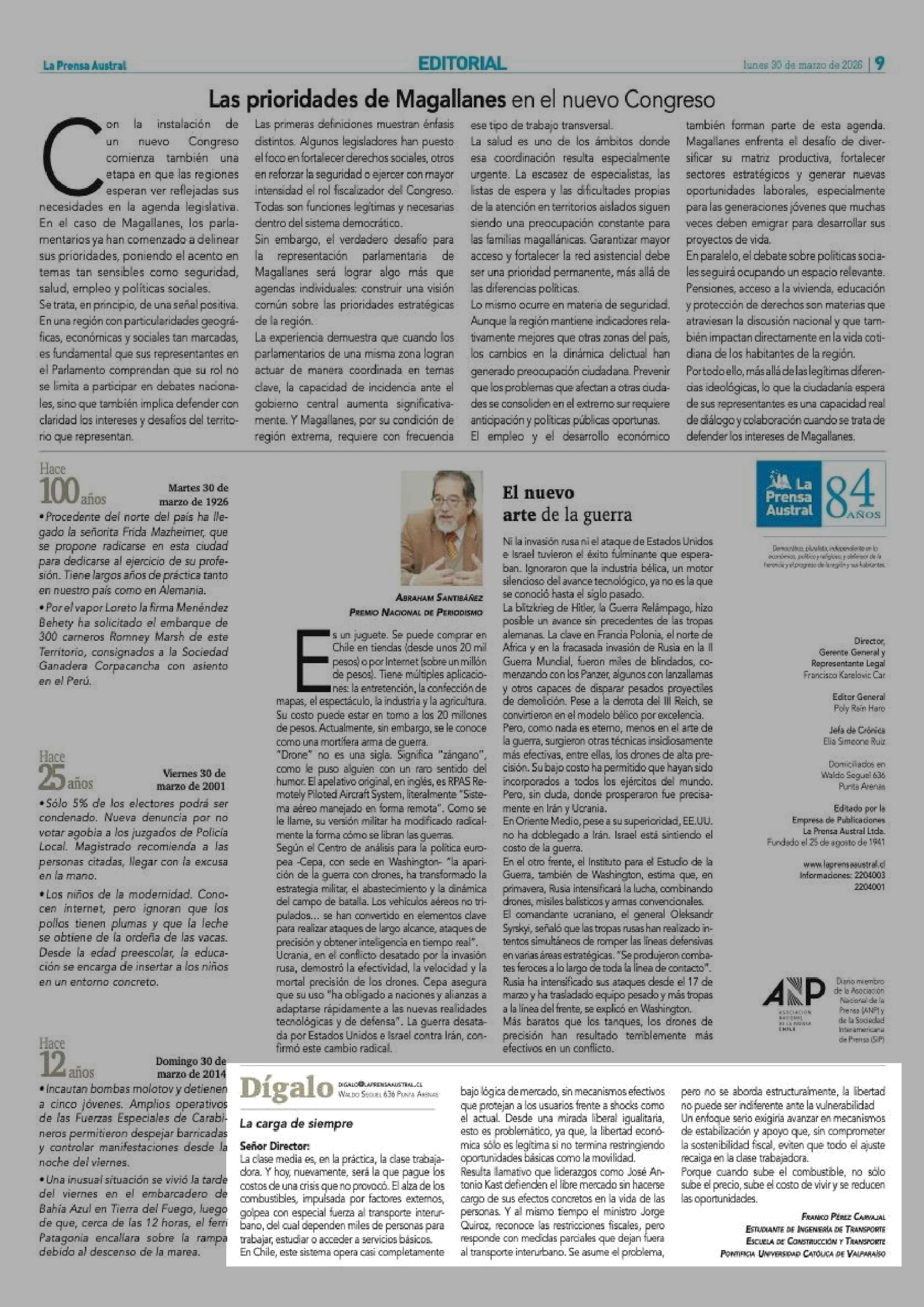 Cartas: La carga de siempre 30-03-2026 La Prensa Austral |
