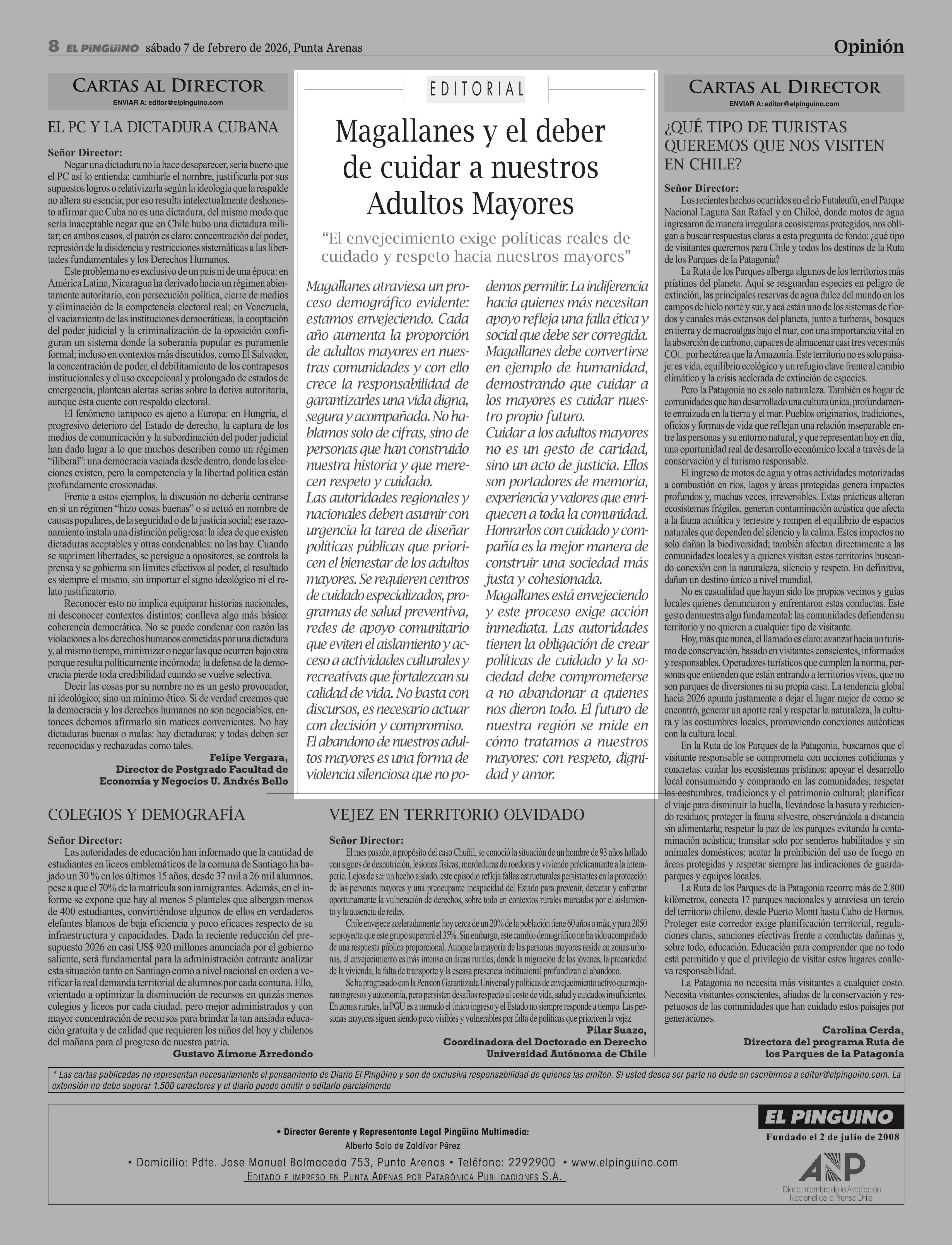 Editorial: Magallanes y el deber de cuidar a nuestros Adultos Mayores 07-02-2026 El Pingüino |