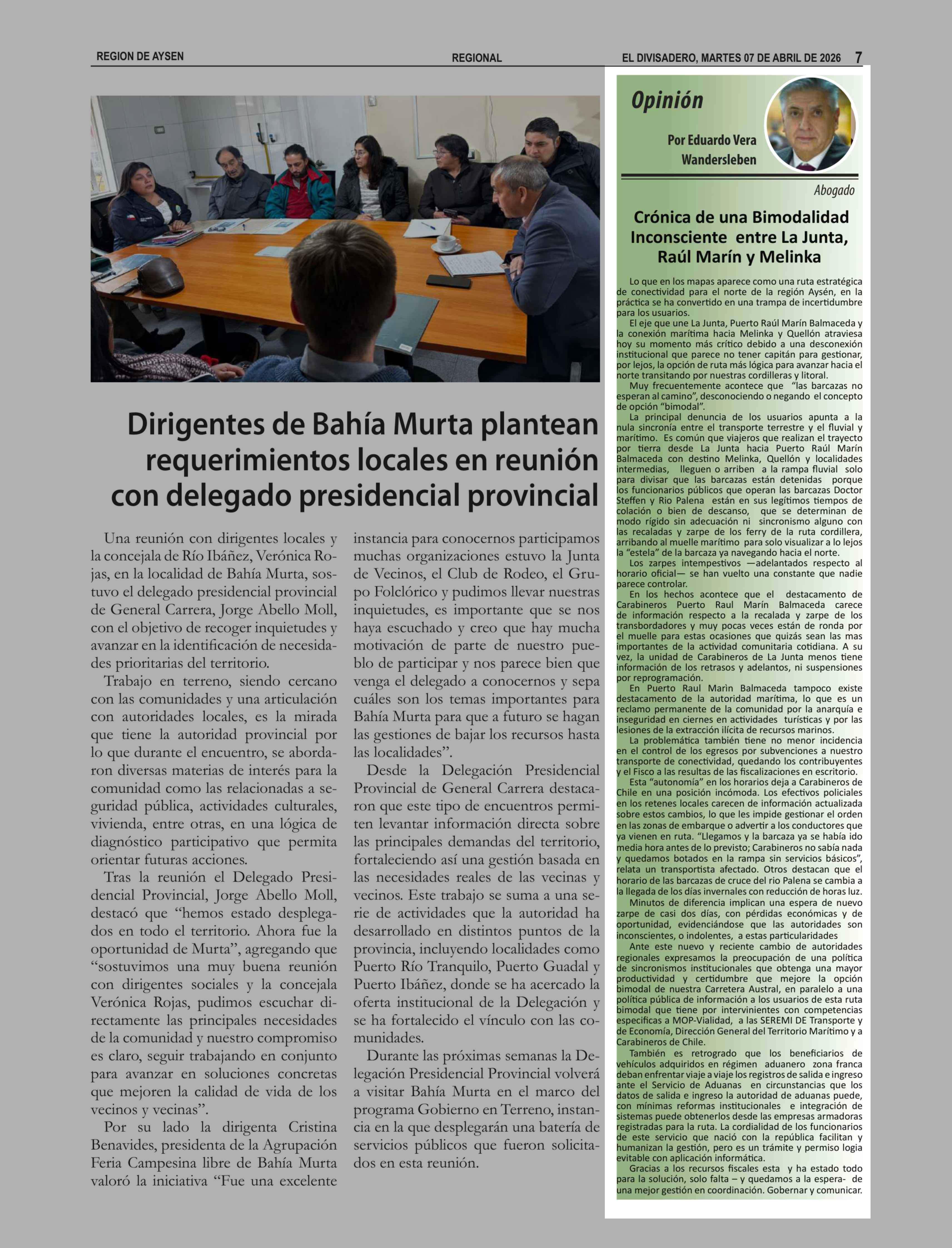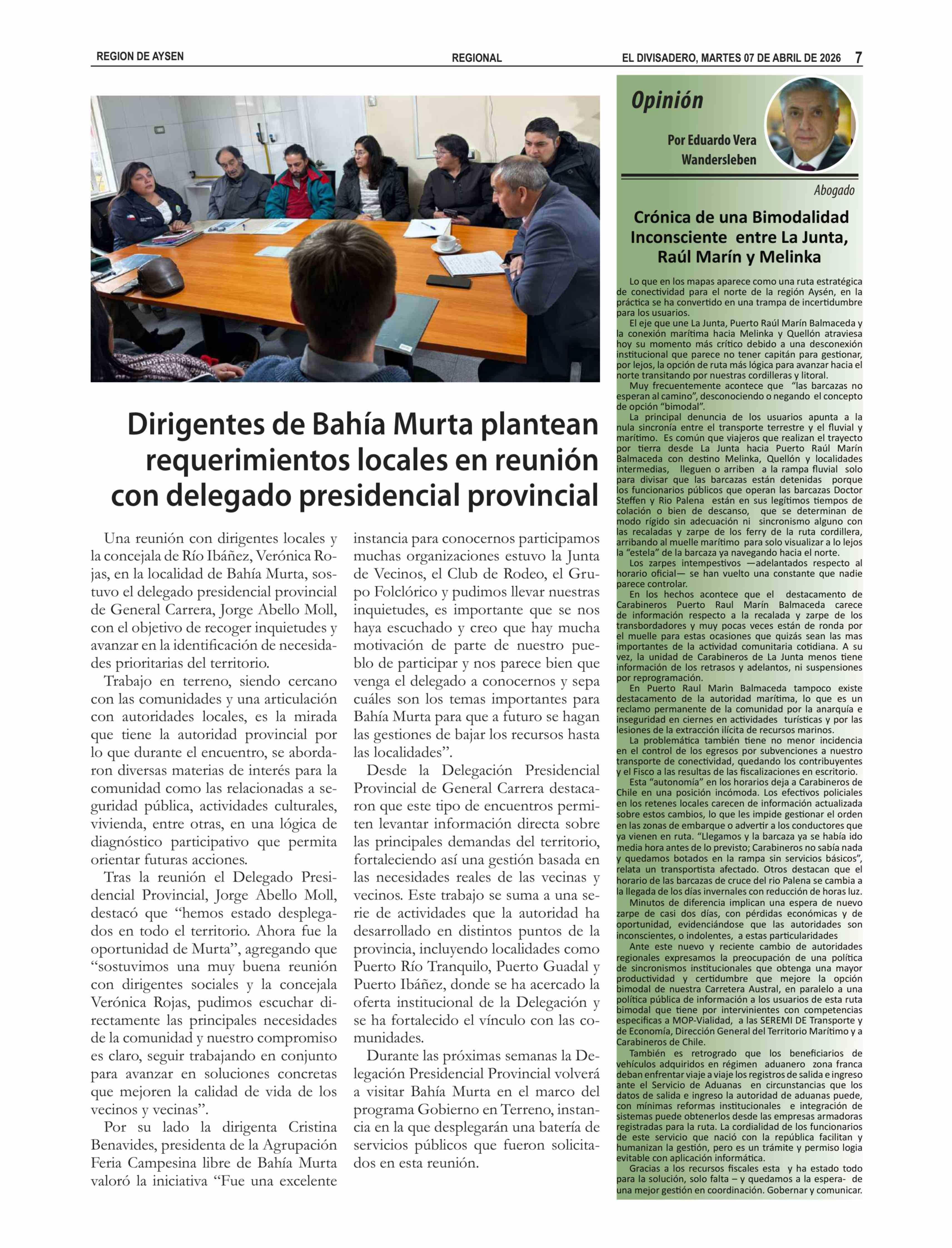 Columnas de Opinión: Crónica de una Bimodalidad Inconsciente entre La Junta, Raúl Marín y Melinka 07-04-2026 El Divisadero |