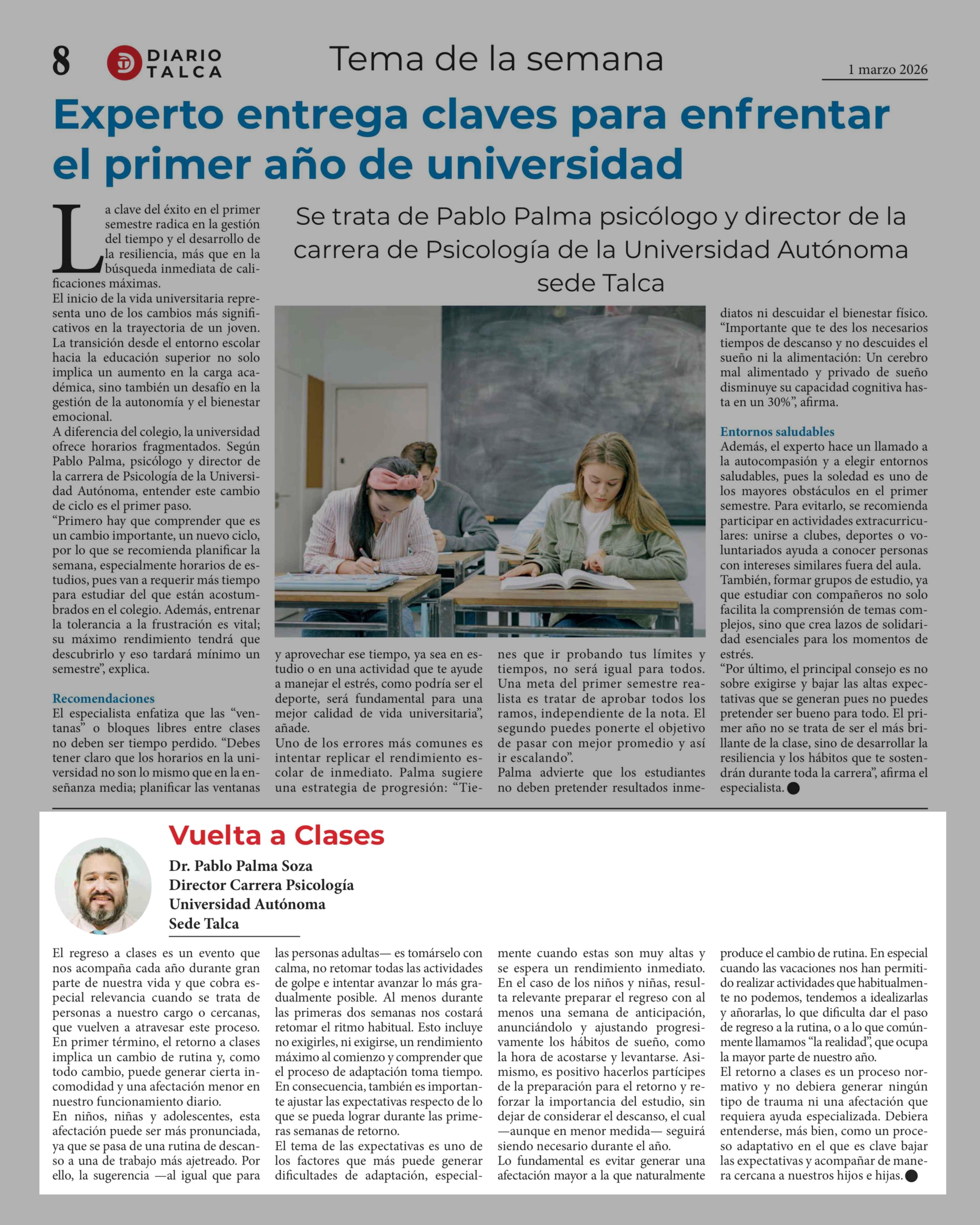 Columnas de Opinión: Vuelta a Clases 01-03-2026 Diario Talca |