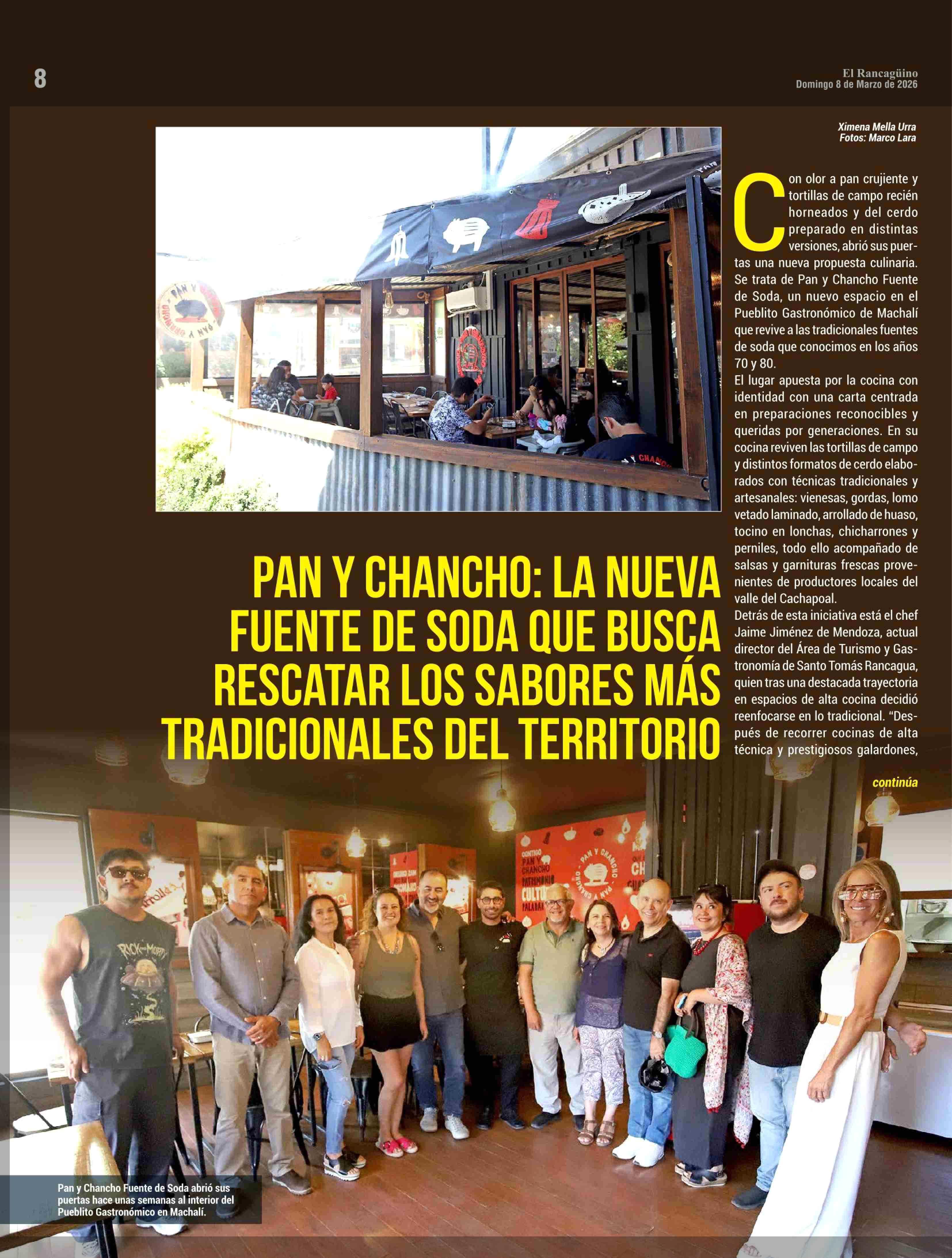 PAN Y CHANCHO: LA NUEVA FUENTE DE SODA QUE BUSCA RESCATAR LOS SABORES MAS TRADICIONALES DEL TERRITORIO 08-03-2026 El Rancagüino |