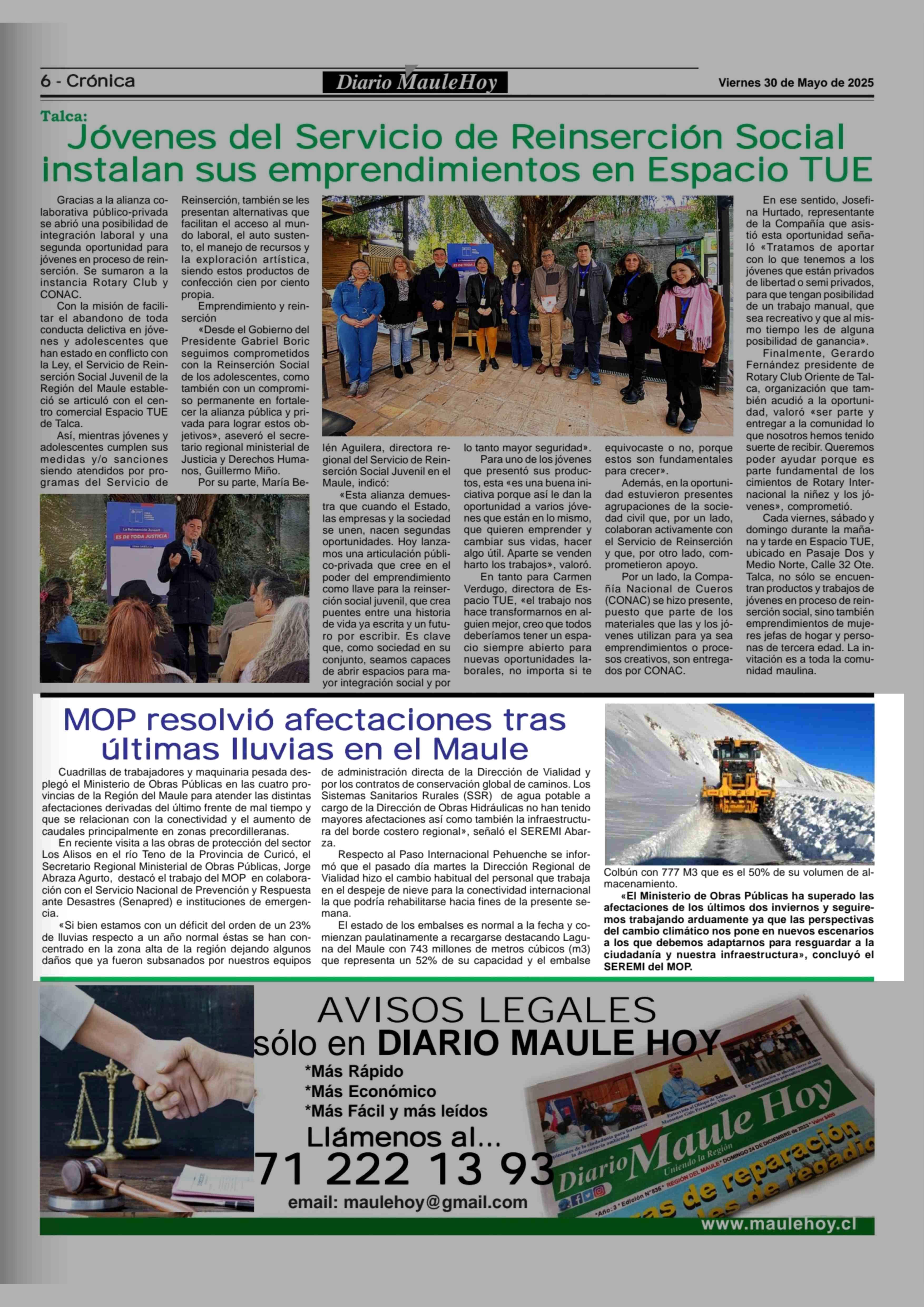 Fecha: 30-05-2025 Sector: Noticia general Región: Región del Maule