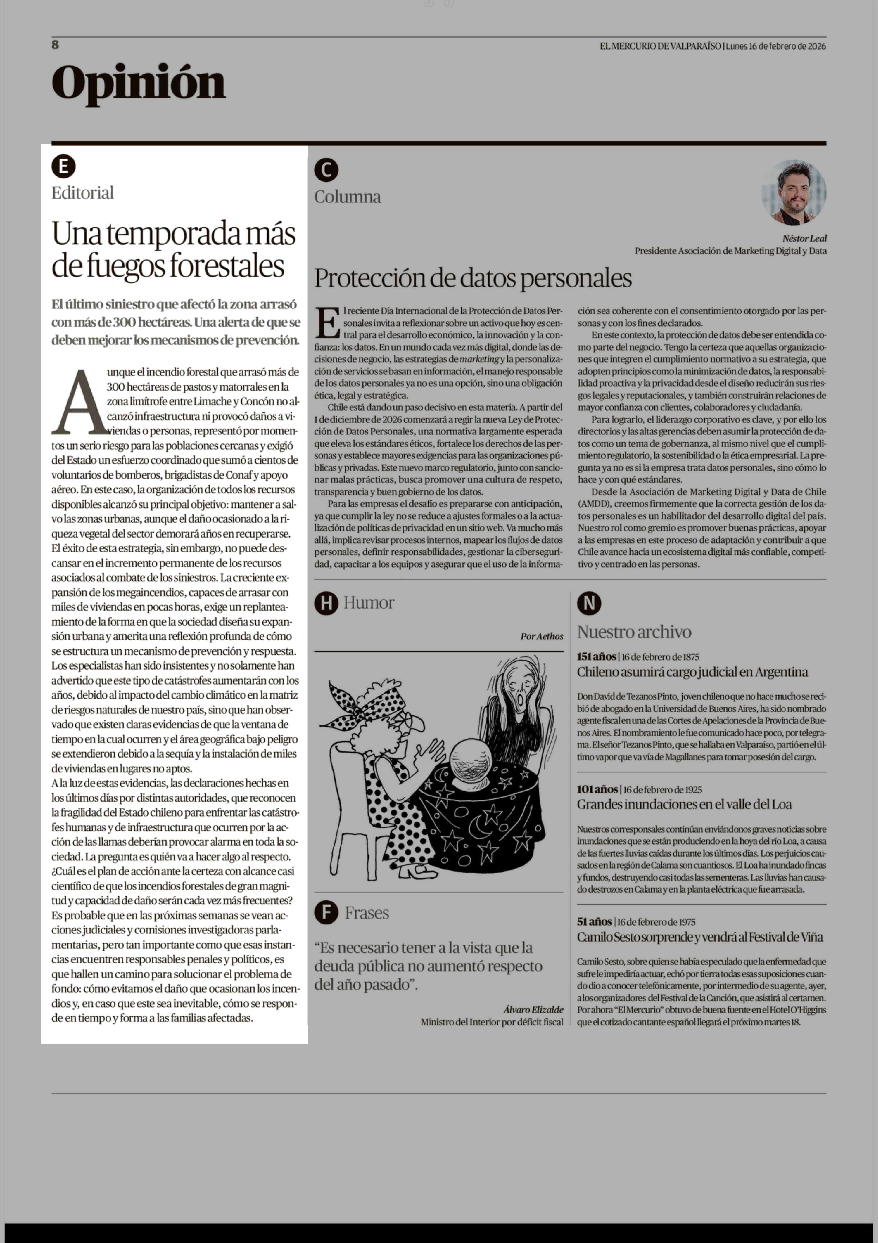 Editorial: Una temporada más de fuegos forestales 16-02-2026 El Mercurio de Valparaíso |