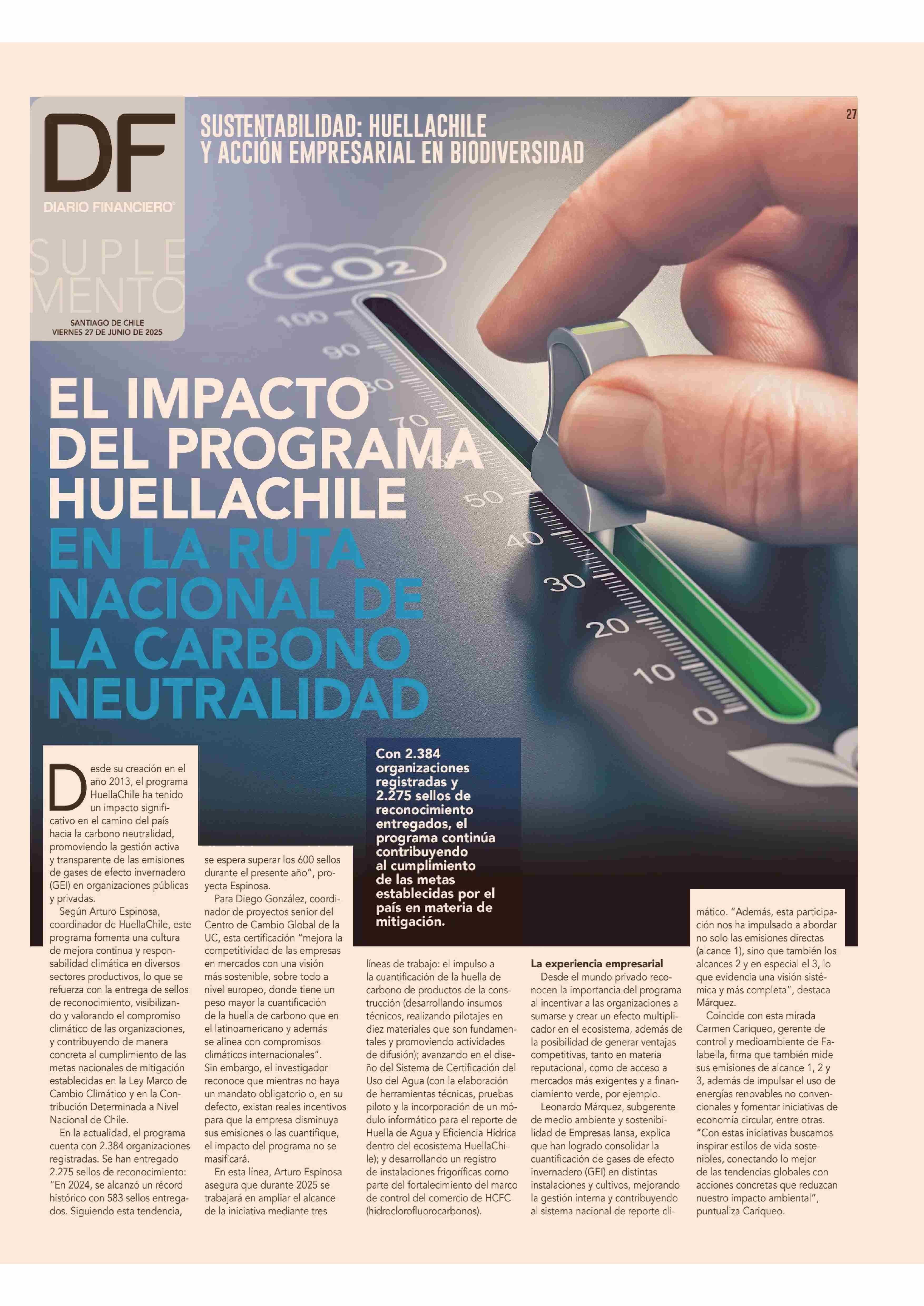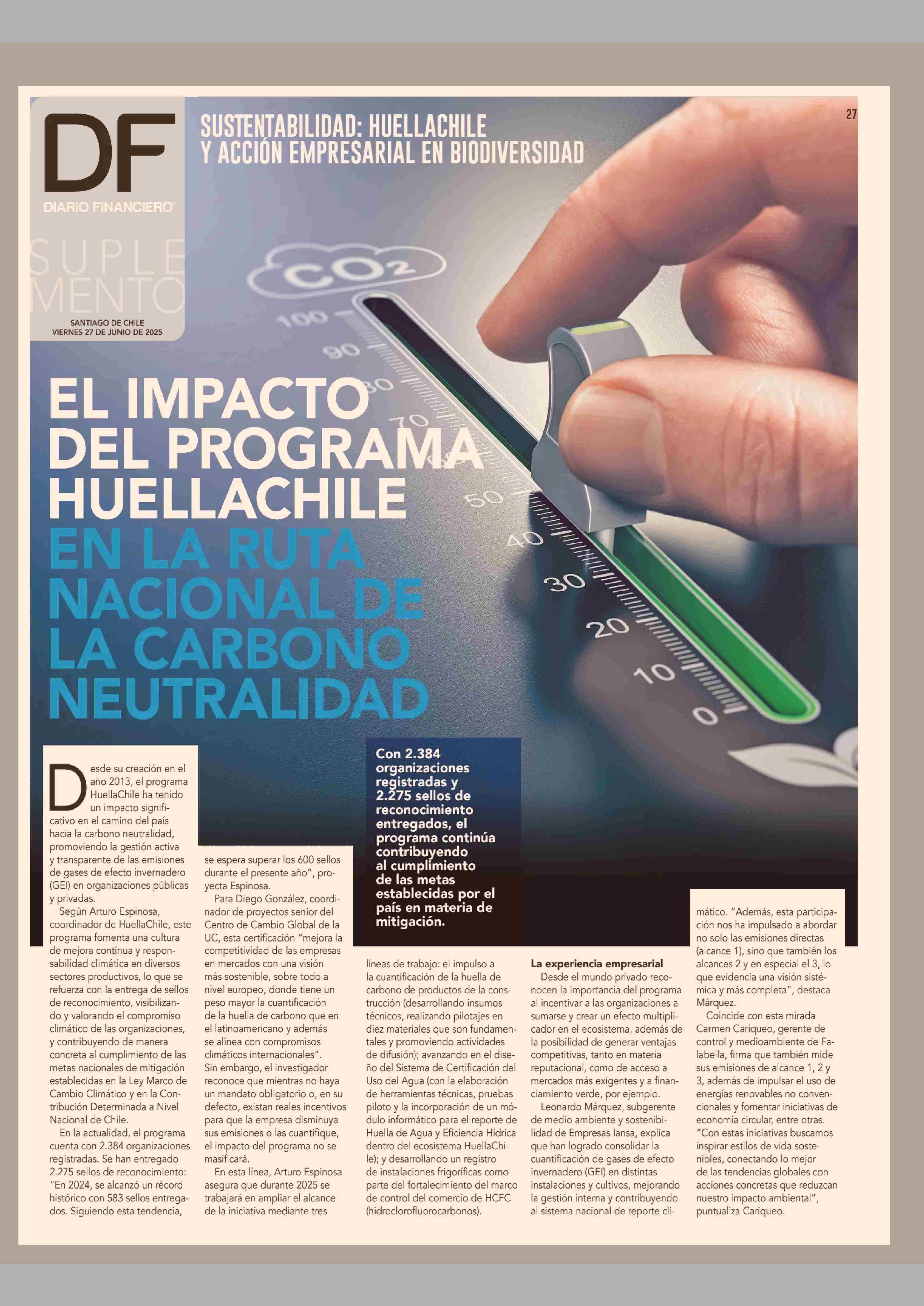 EL IMPACTO DEL PROGRAMA HUELLACHILE EN LA RUTA NACIONAL DE LA CARBONO NEUTRALIDAD 27-06-2025 Diario Financiero |