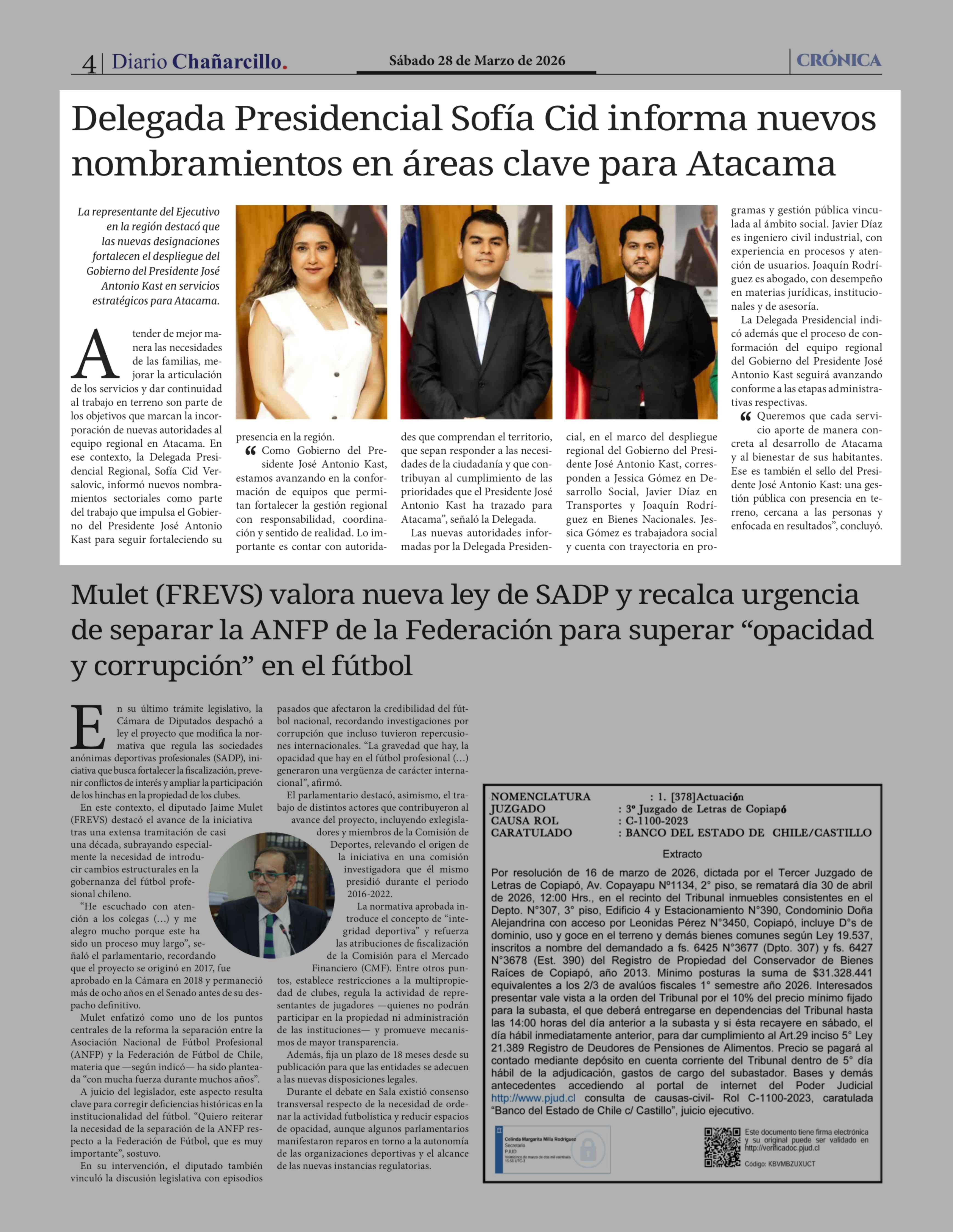Delegada Presidencial Sofía Cid informa nuevos nombramientos en áreas clave para Atacama 28-03-2026 Diario Chañarcillo |