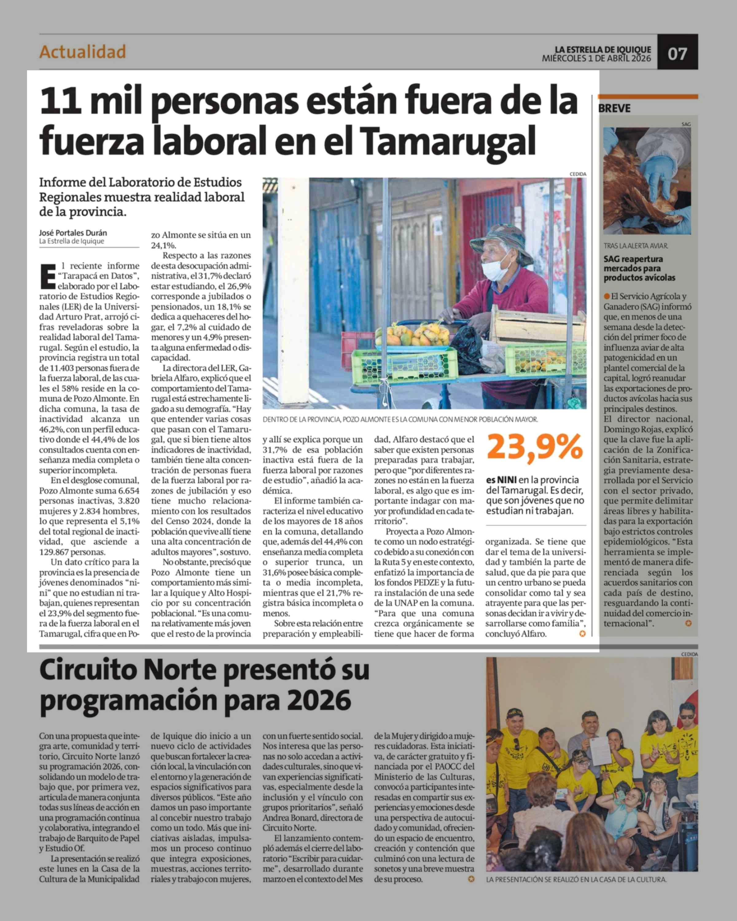 11 Mil personas están fuera de la fuerza laboral en el Tamarugal 01-04-2026 La Estrella de Iquique |