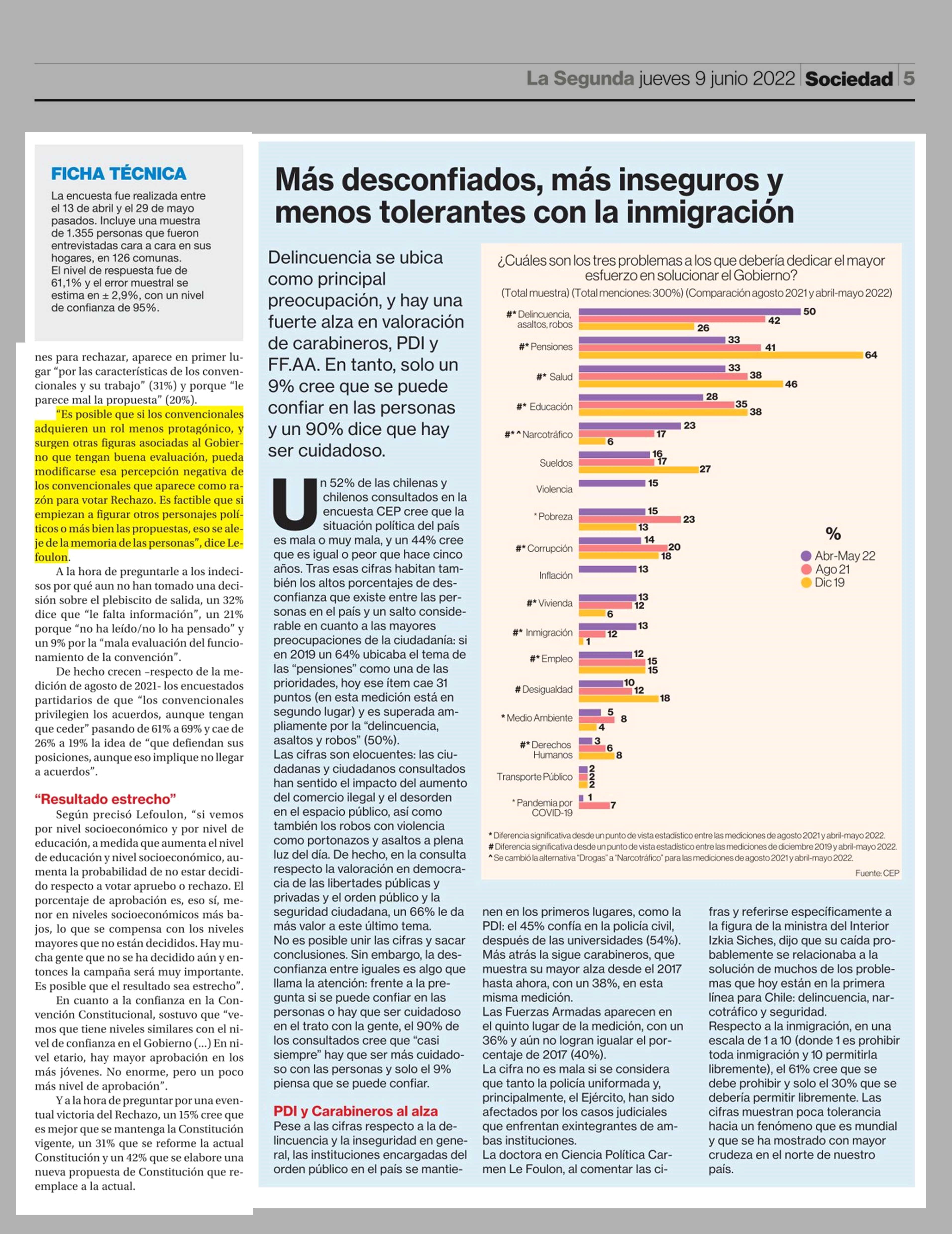 Encuesta CEP: Solo 36% cree que nueva Constitución ayudará a resolver los problemas del país 09-06-2022 La Segunda |
