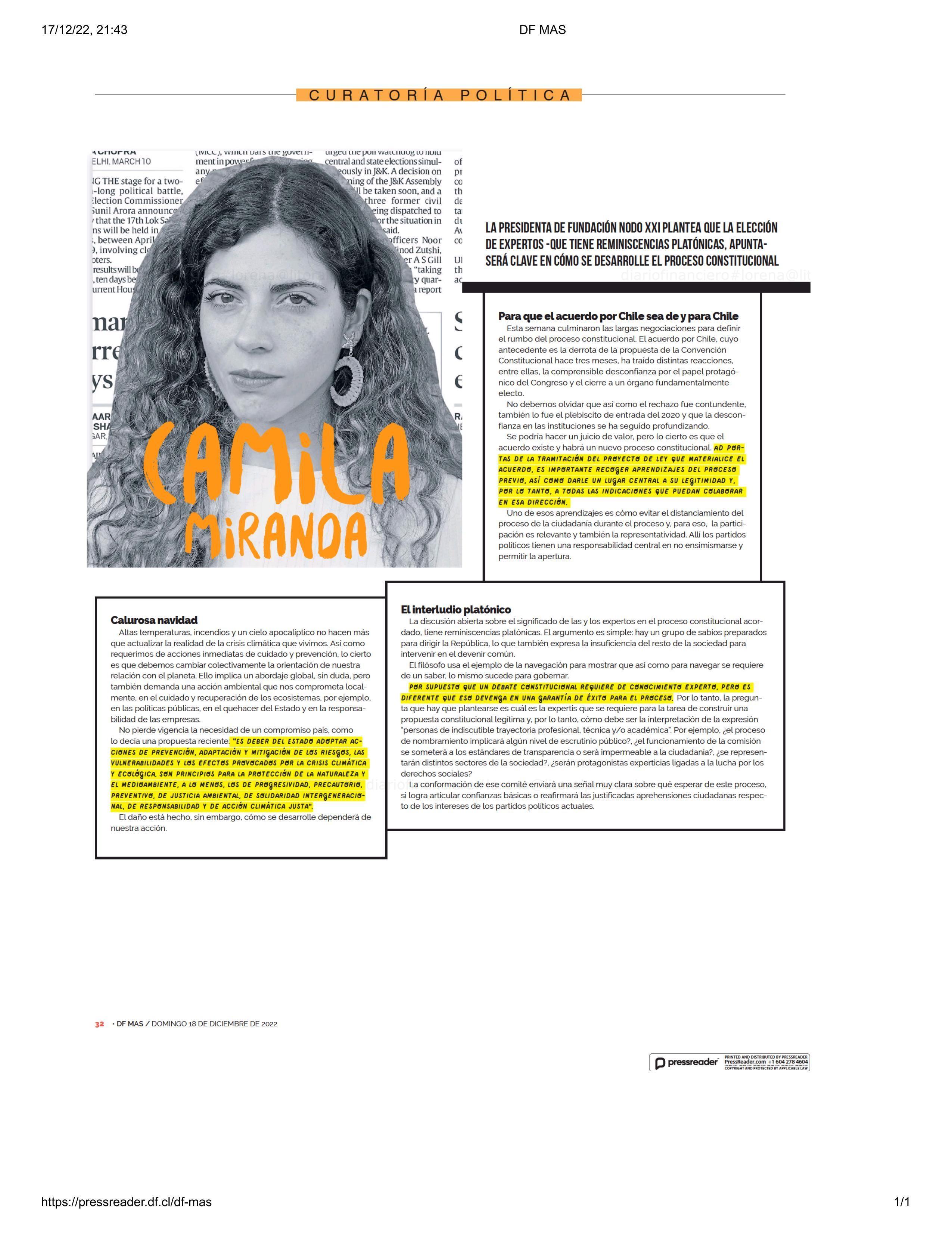 CURATORIA POLÍTICA 18-12-2022 Diario Financiero |