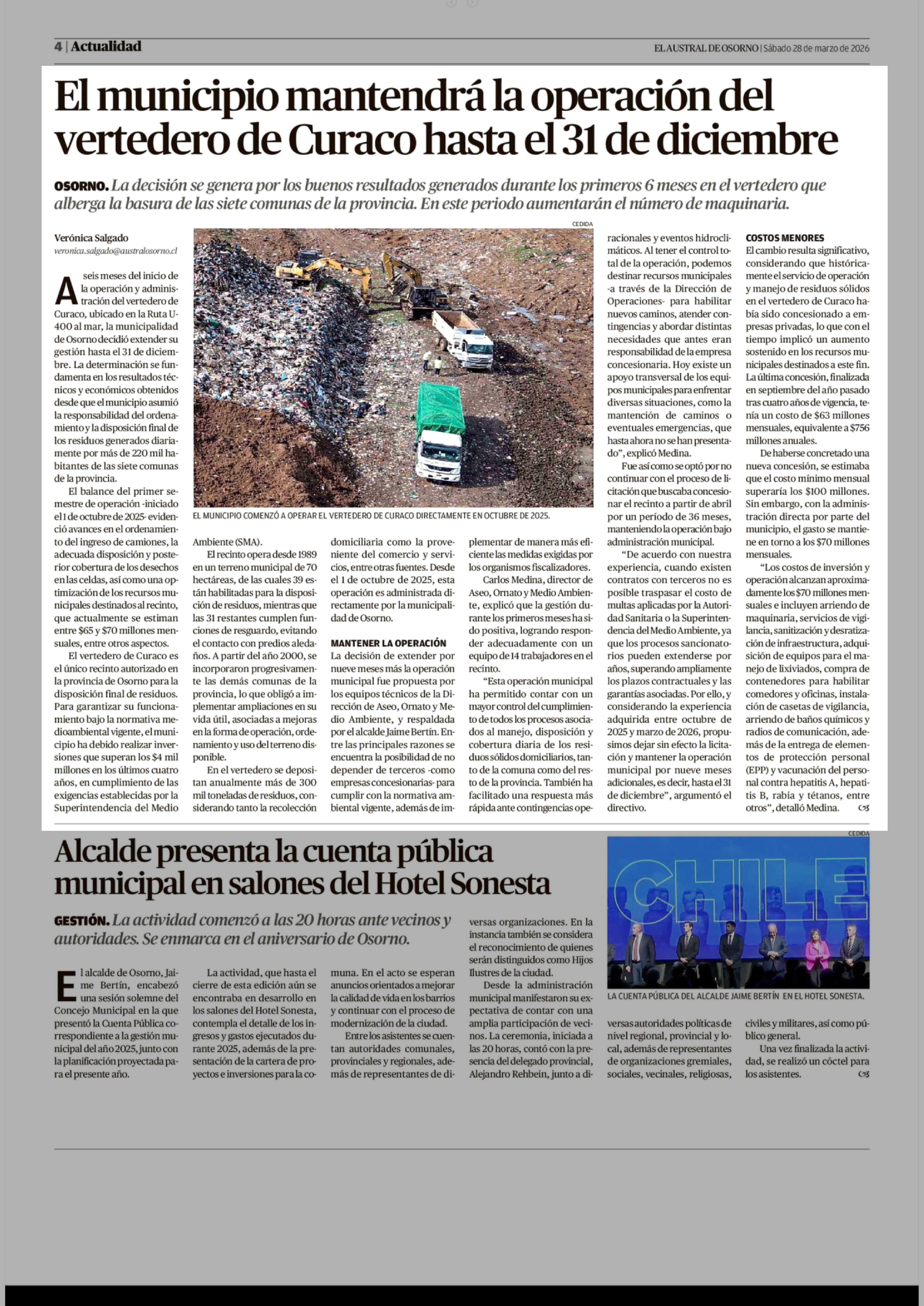 Fuente: El Austral de Osorno (El Austral de Osorno) Página(s): 4