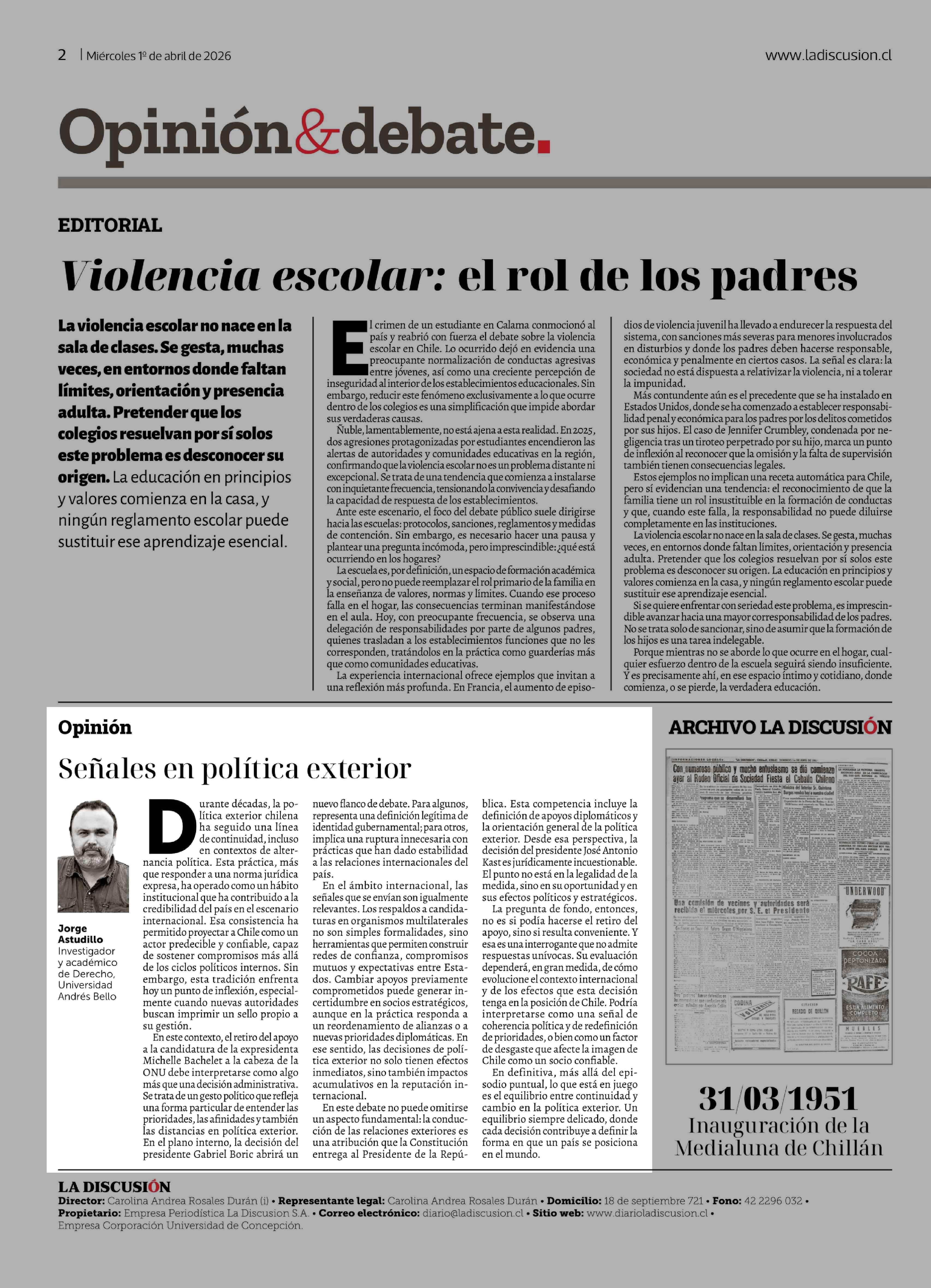 | Fecha: | 01-04-2026 | Sector: | Columnas de Opinión | Región: | Región del Ñuble |
