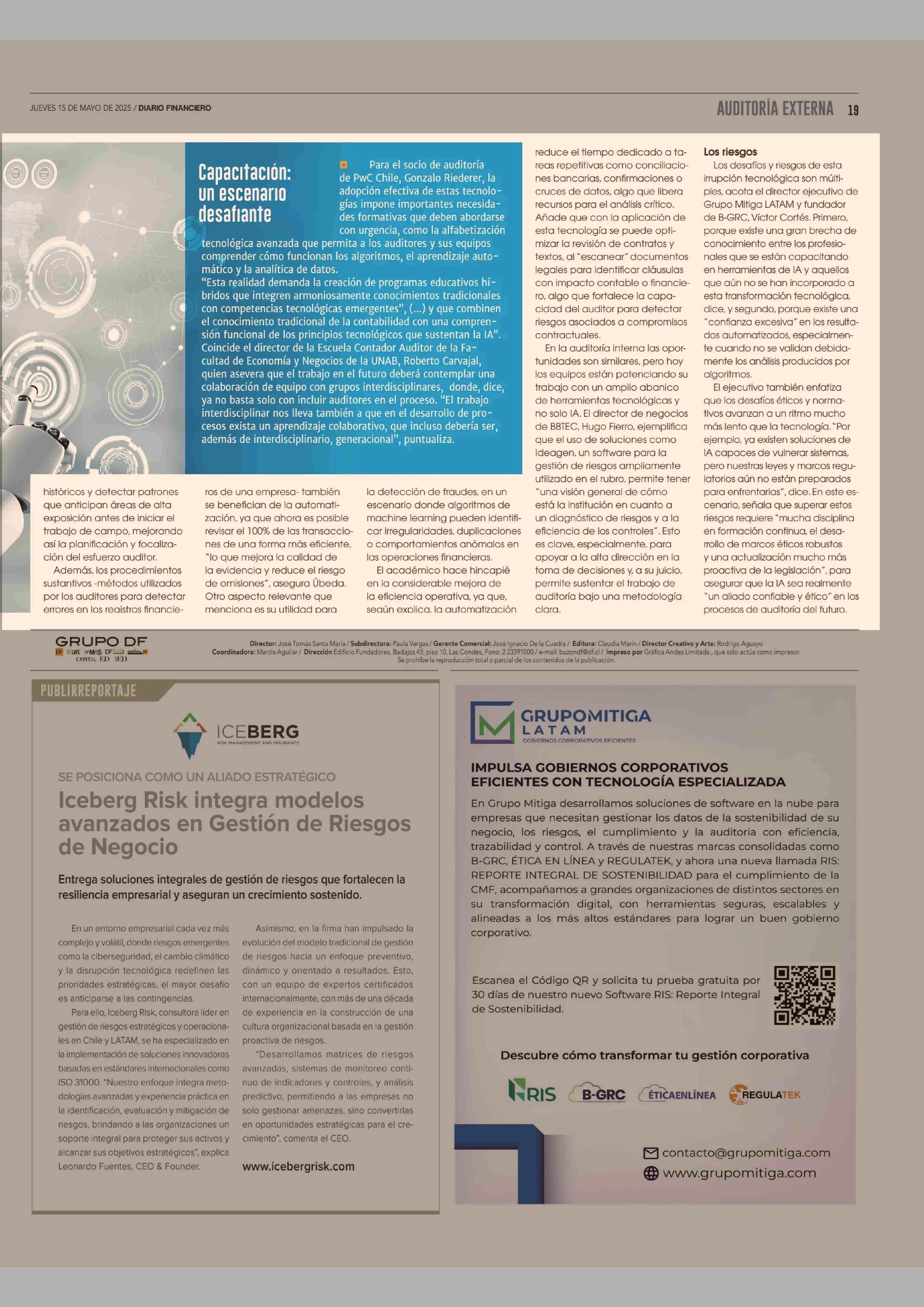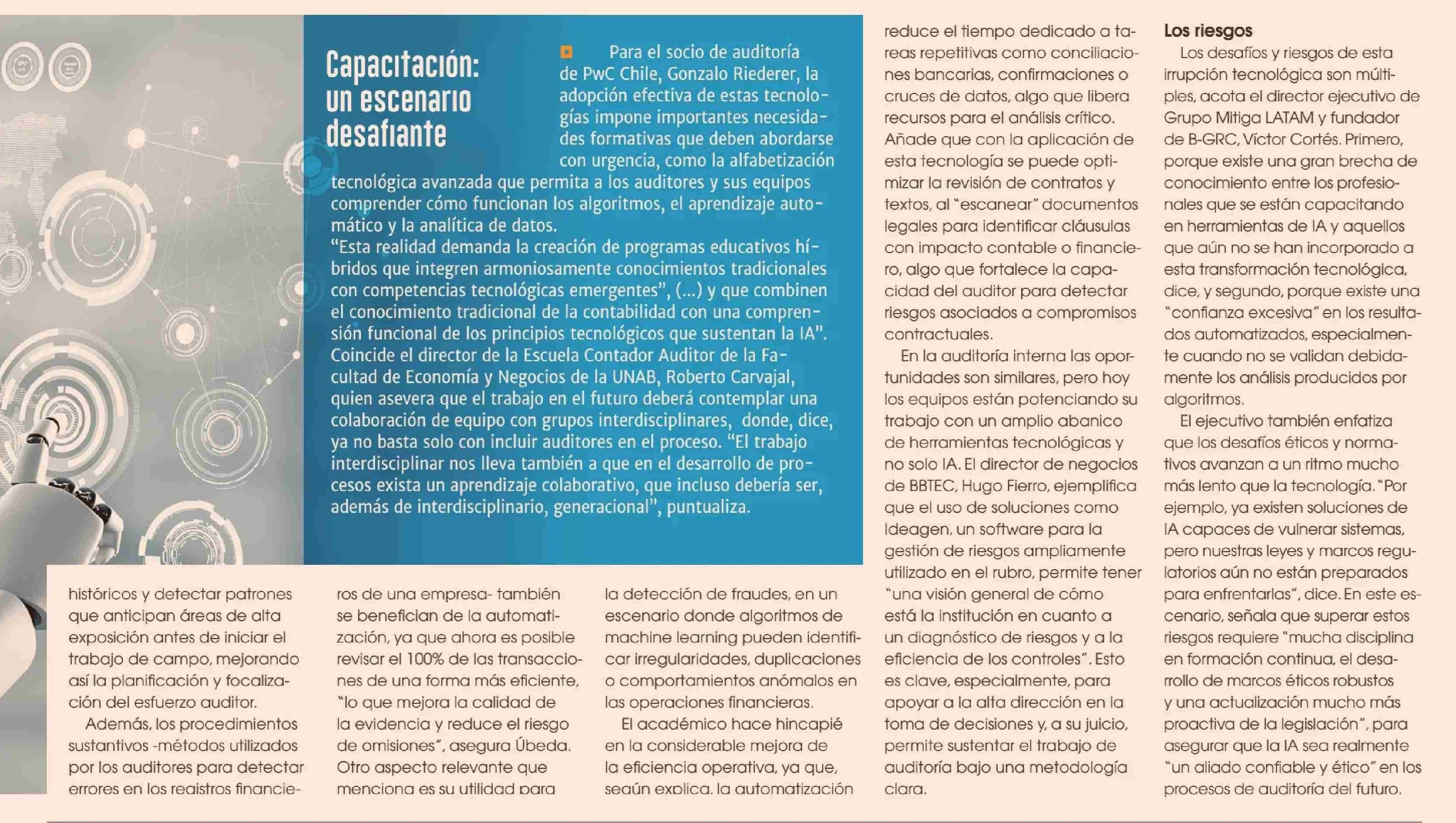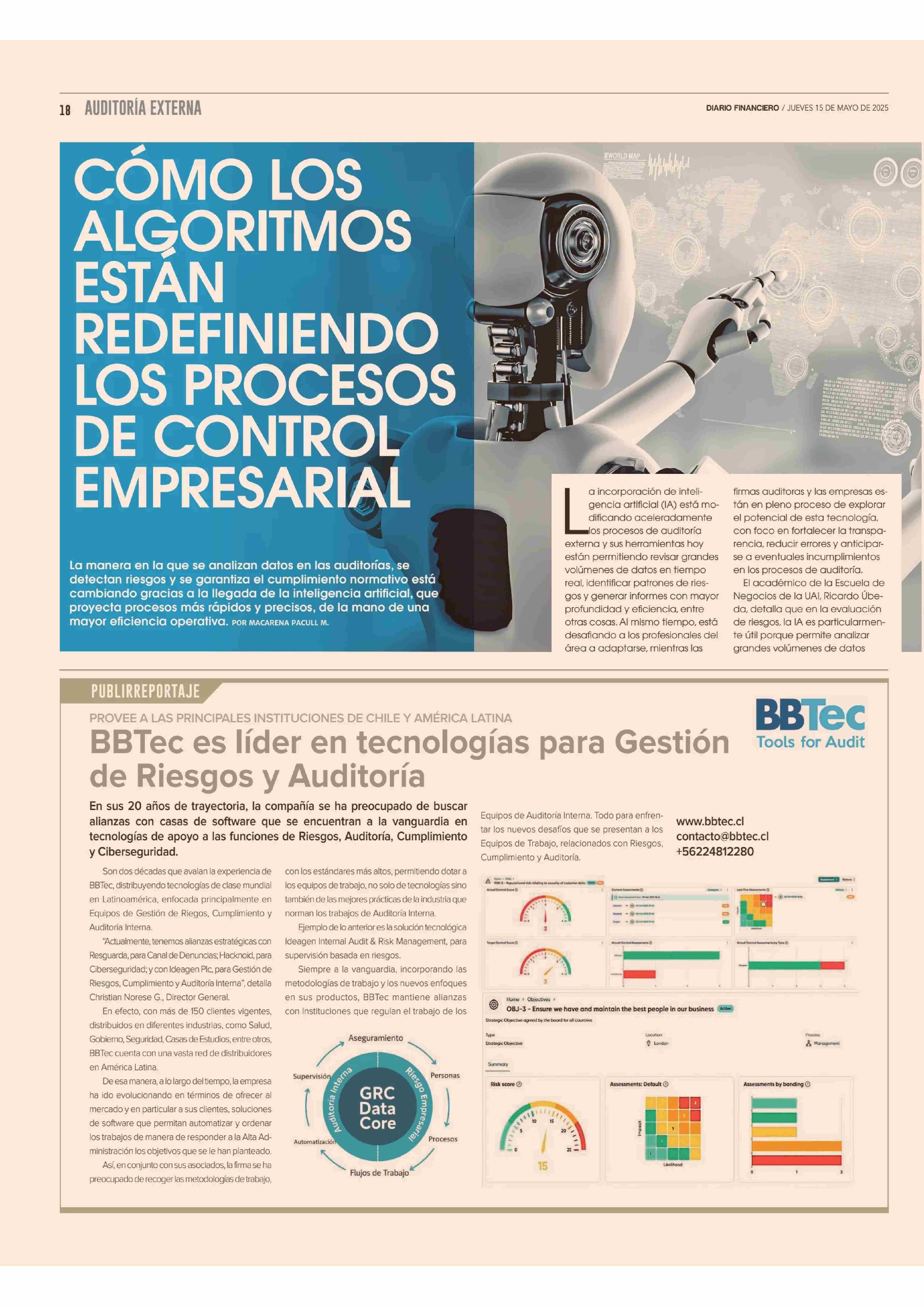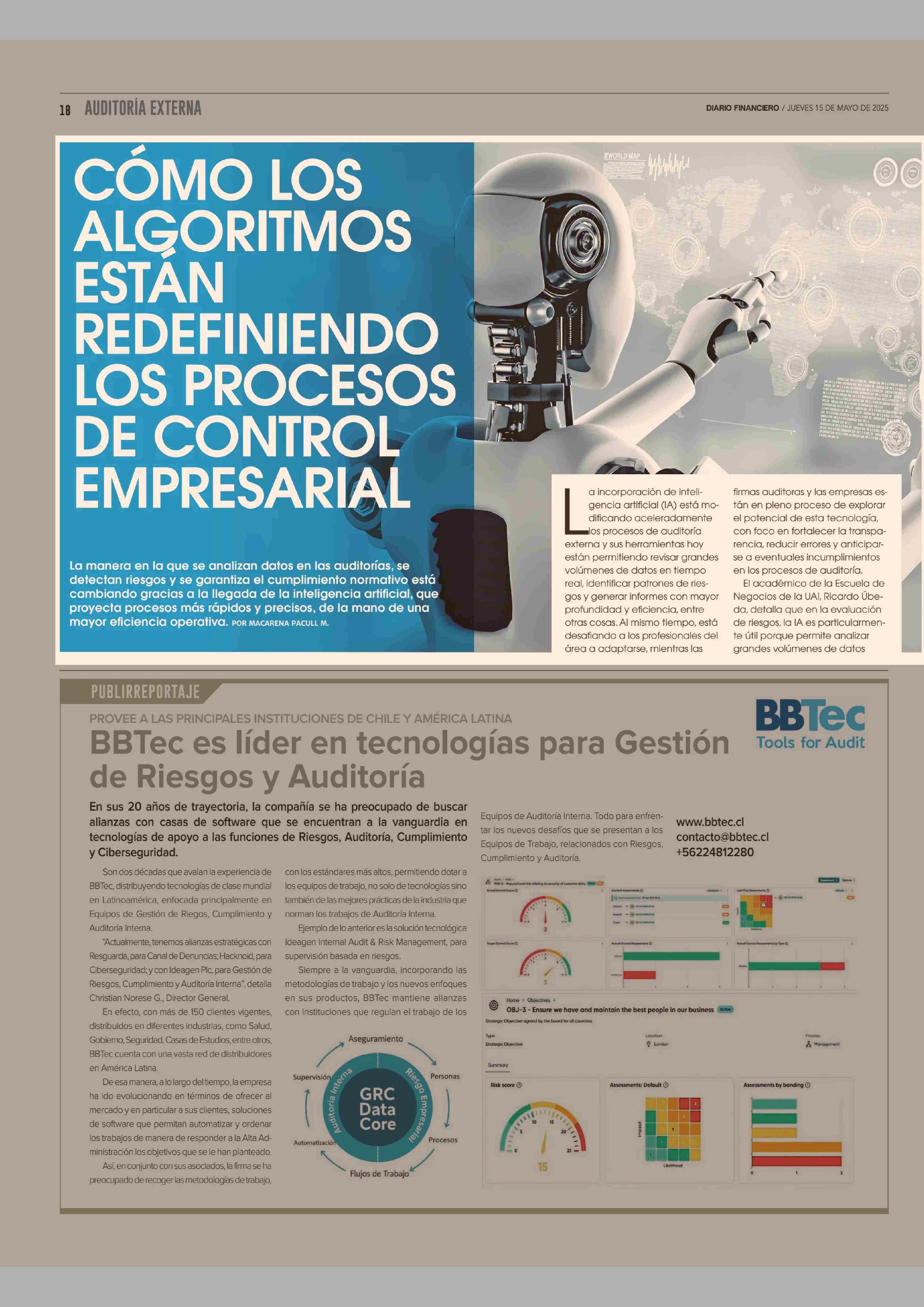 CÓMO LOS ALGORITMOS ESTÁN REDEFINIENDO LOS PROCESOS DE CONTROL EMPRESARIAL 15-05-2025 Diario Financiero |