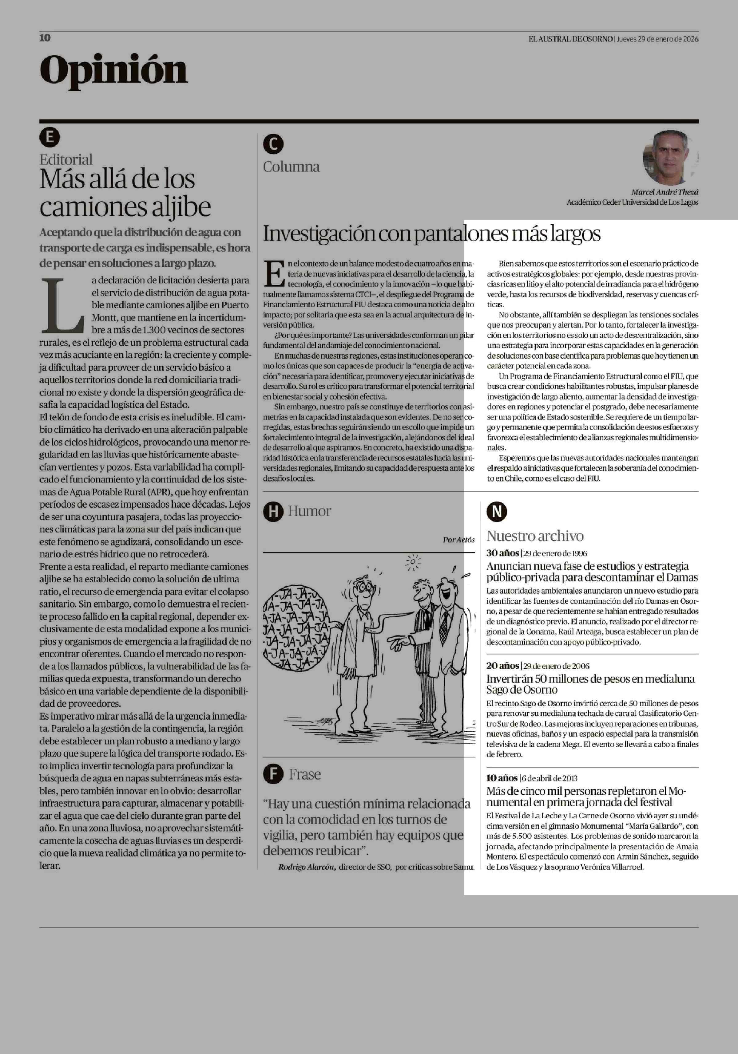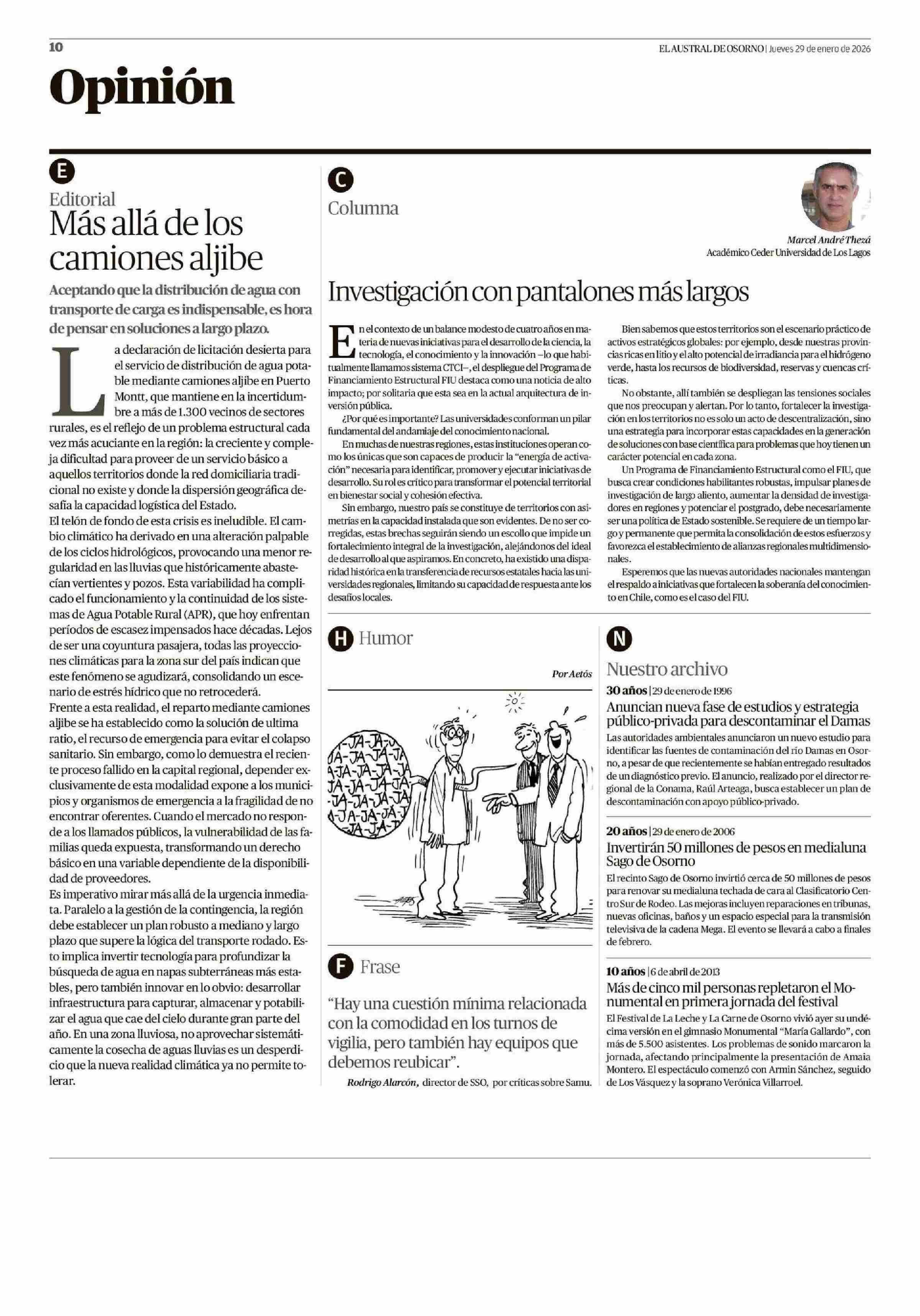 Columnas de Opinión: Investigación con pantalones más largos 29-01-2026 El Austral de Osorno |
