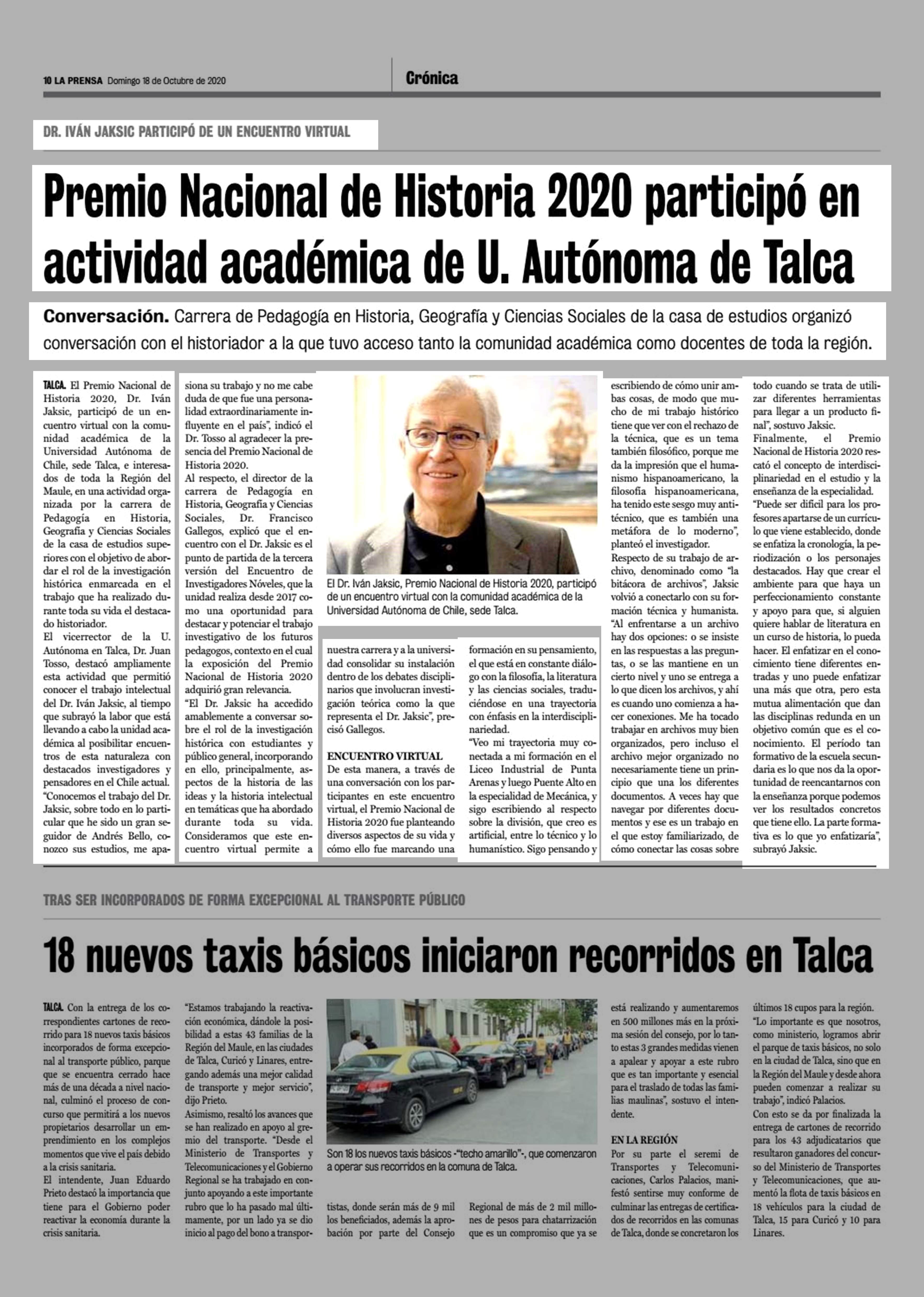 Título: Premio Nacional de Historia 2020 participó en actividad académica de U, Autónoma de Talca