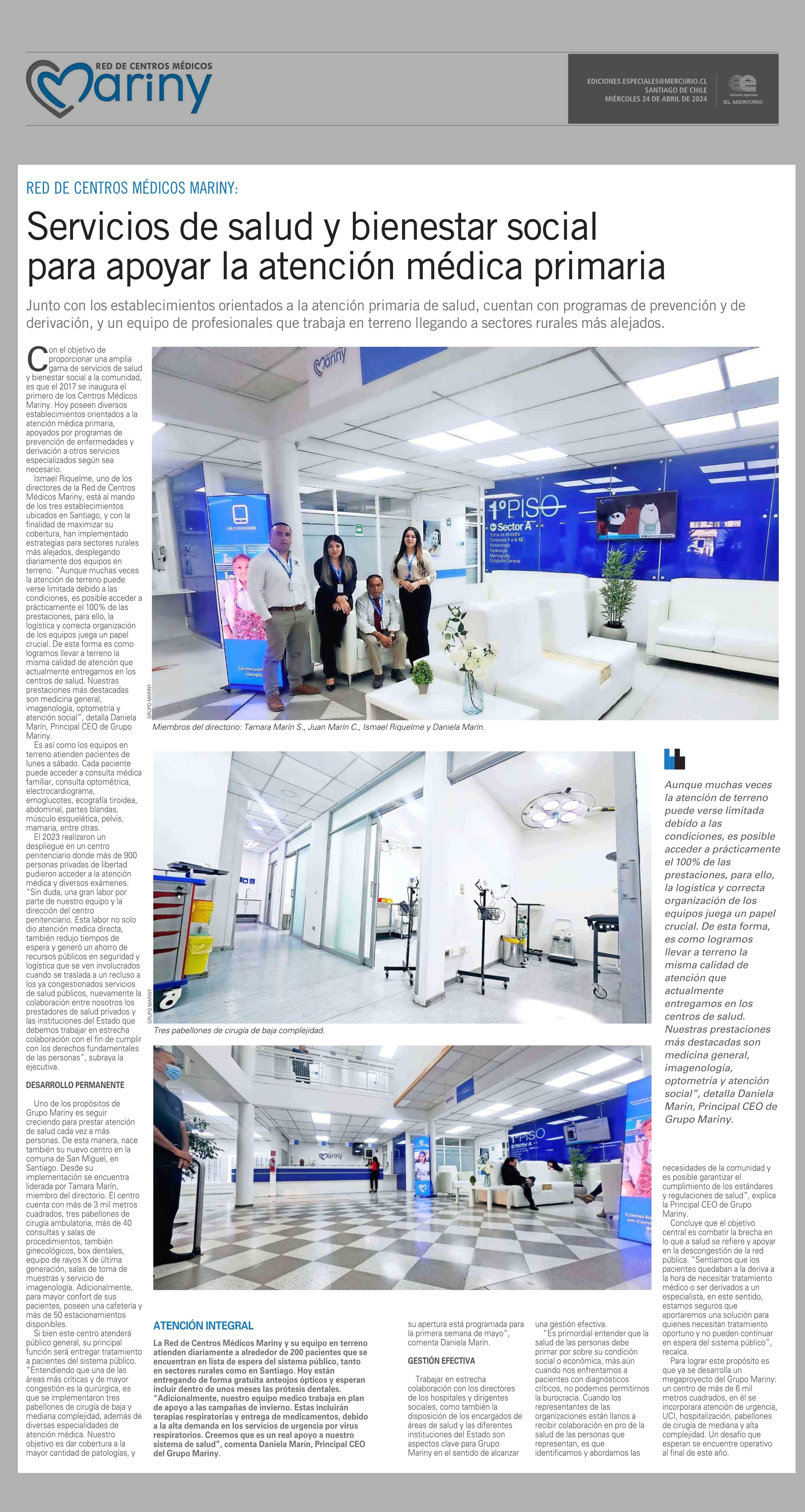 Servicios de salud y bienestar social para apoyar la atención médica primaria 24-04-2024 El Mercurio |