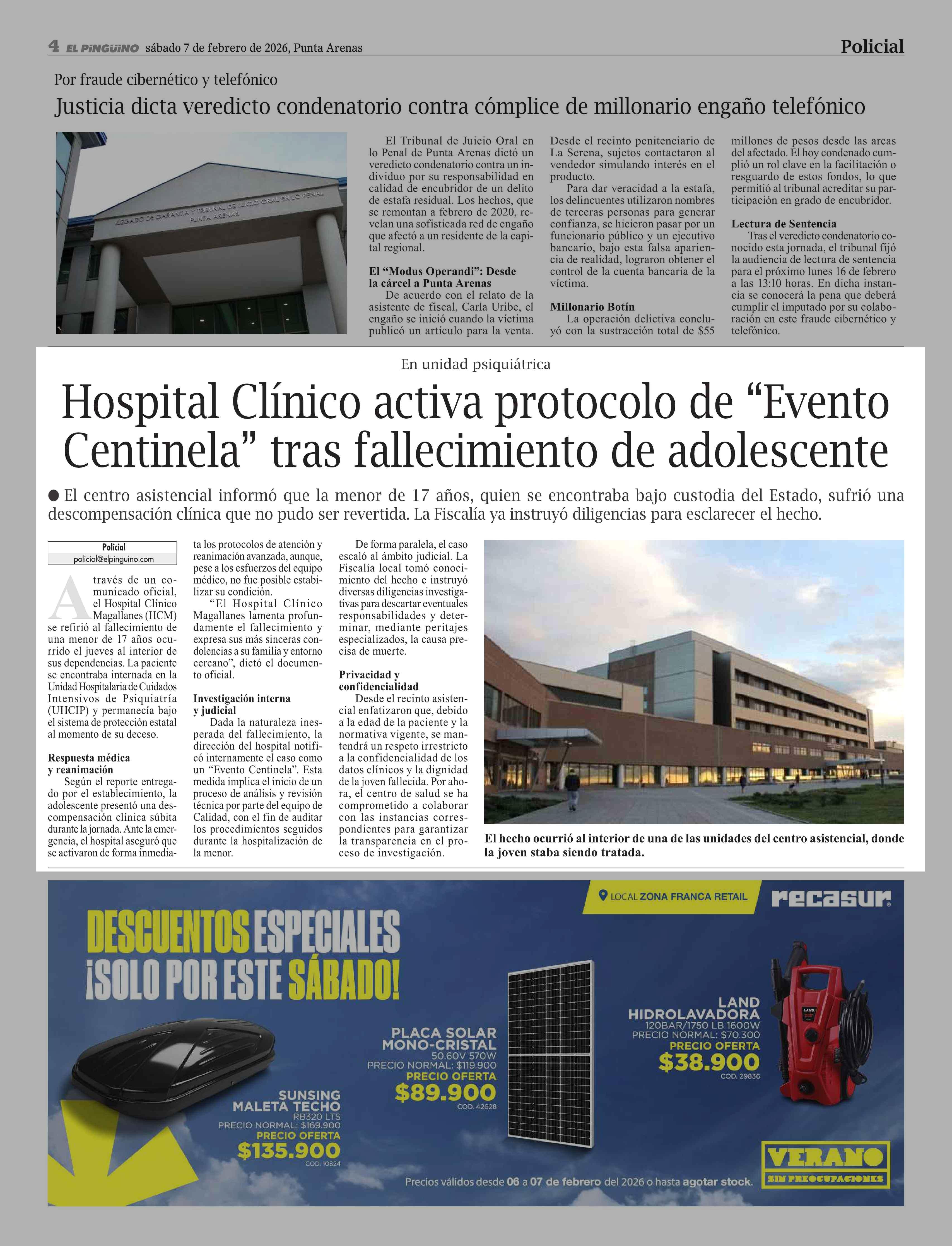 | Fecha: | 07-02-2026 | Sector: | Noticia general | Región: | Región de Magallanes y de la Antártica Chilena |