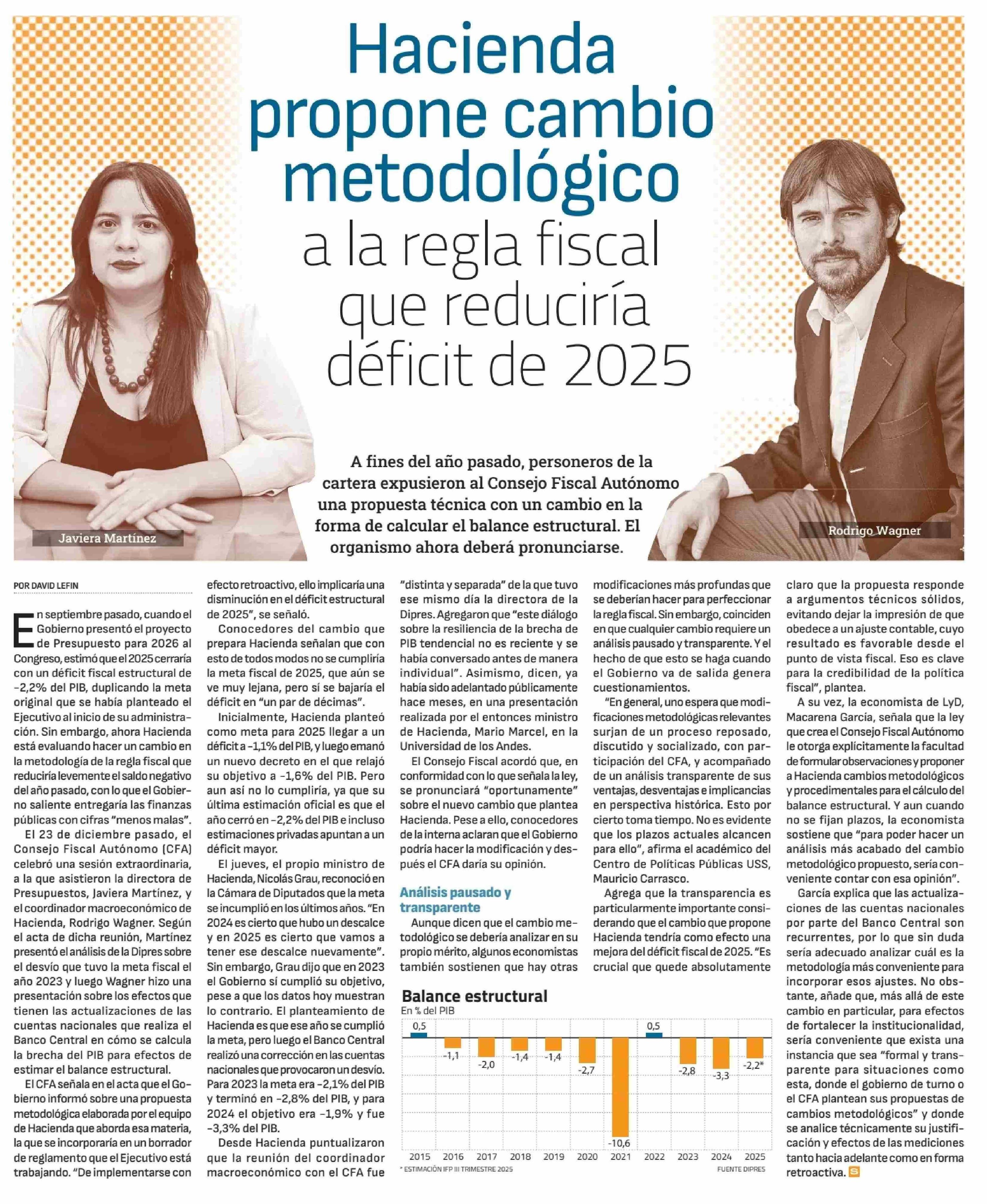 Hacienda propone cambio metodológico a la regla fiscal que reduciría déficit de 2025 10-01-2026 Diario Financiero |