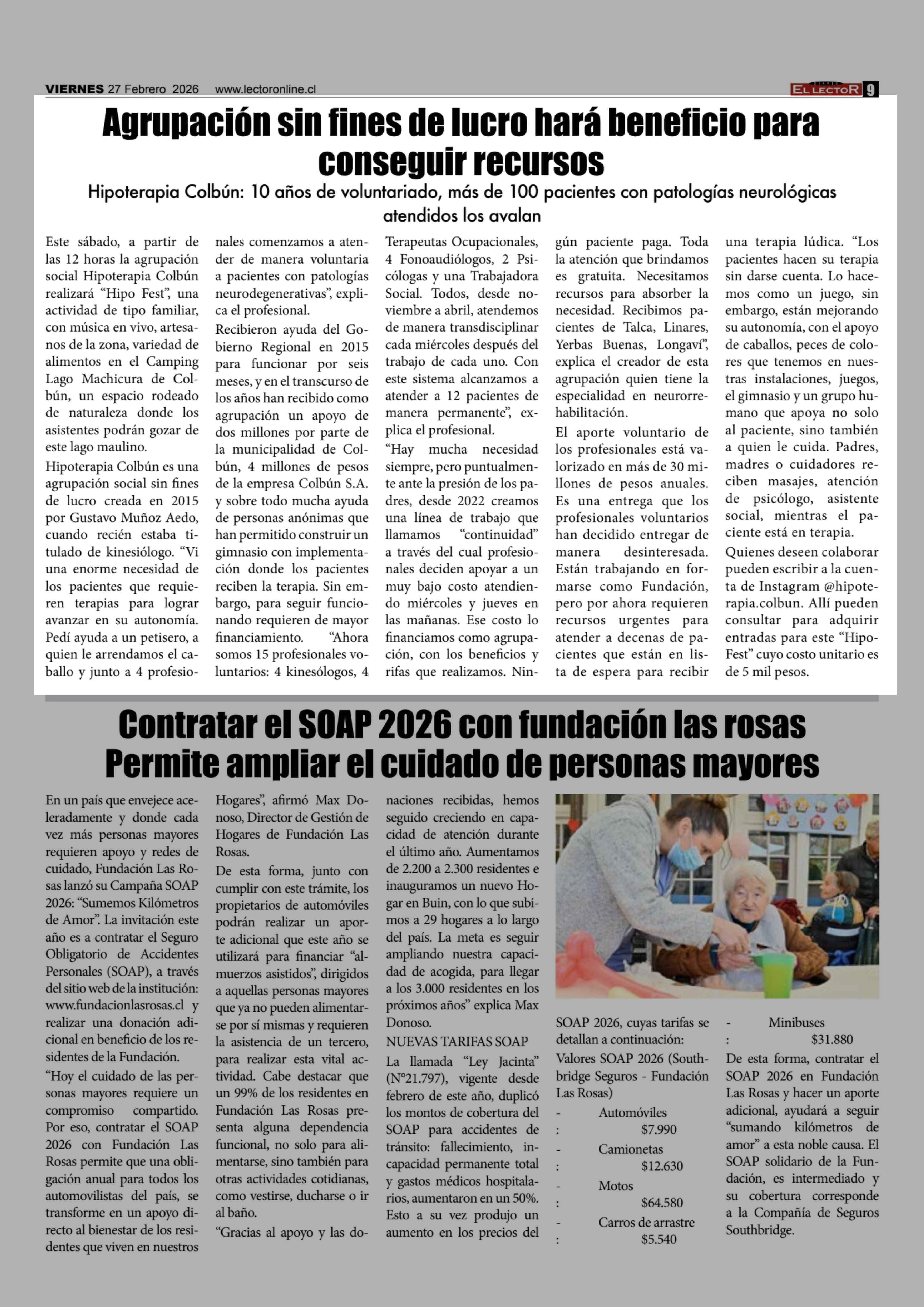 Agrupación sin fines de lucro hará beneficio para conseguir recursos 27-02-2026 El Lector |