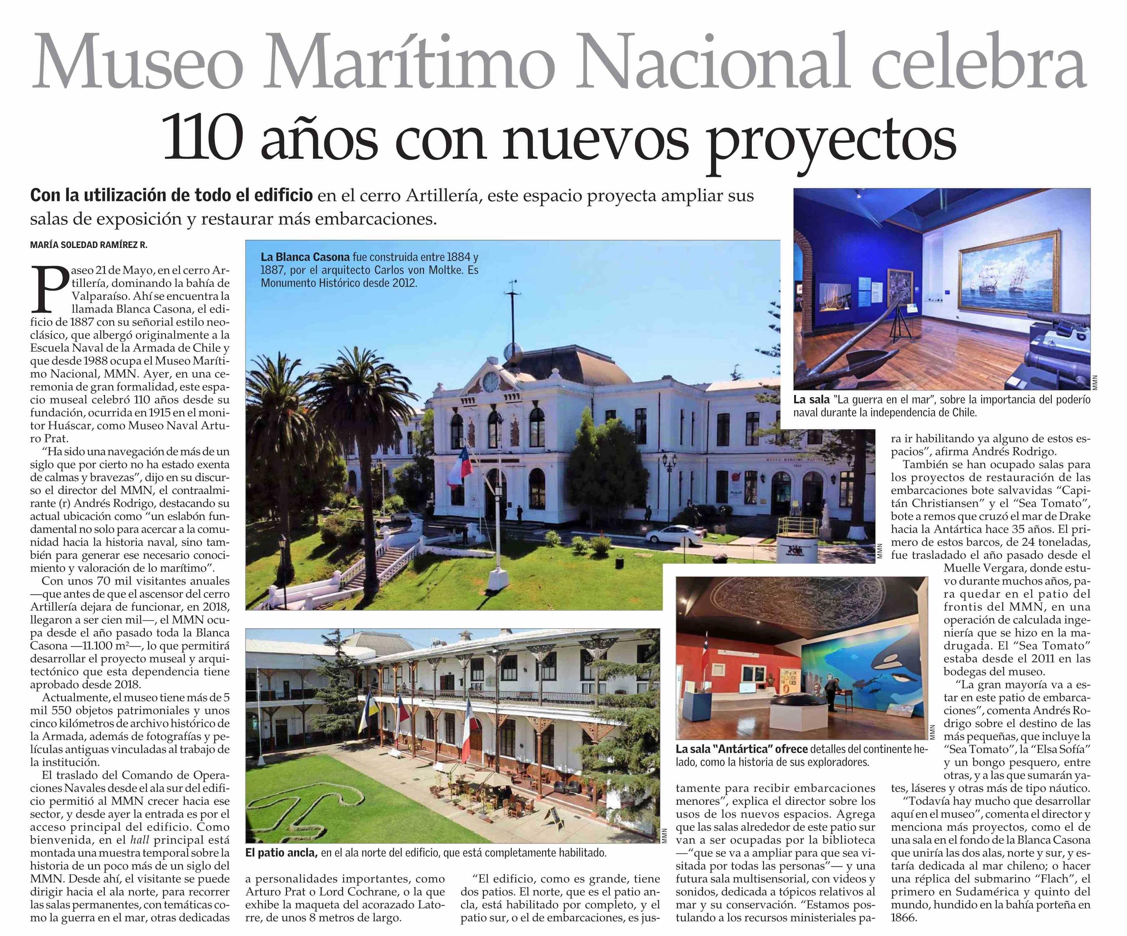 Museo Marítimo Nacional celebra 110 años con nuevos proyectos 01-05-2025 El Mercurio |