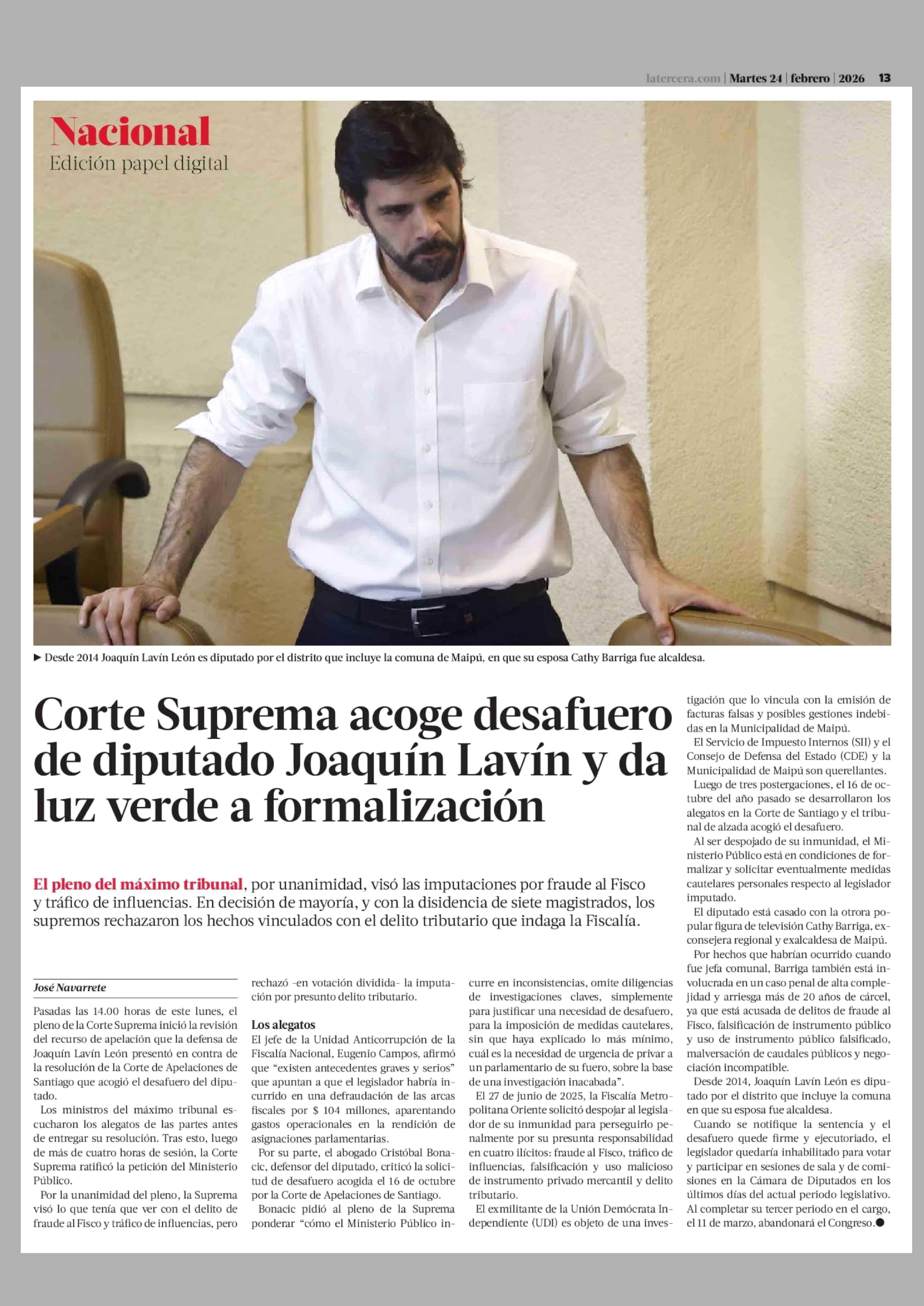 Título: Corte Suprema acoge desafuero de diputado Joaquín Lavín y da luz verde a formalización
