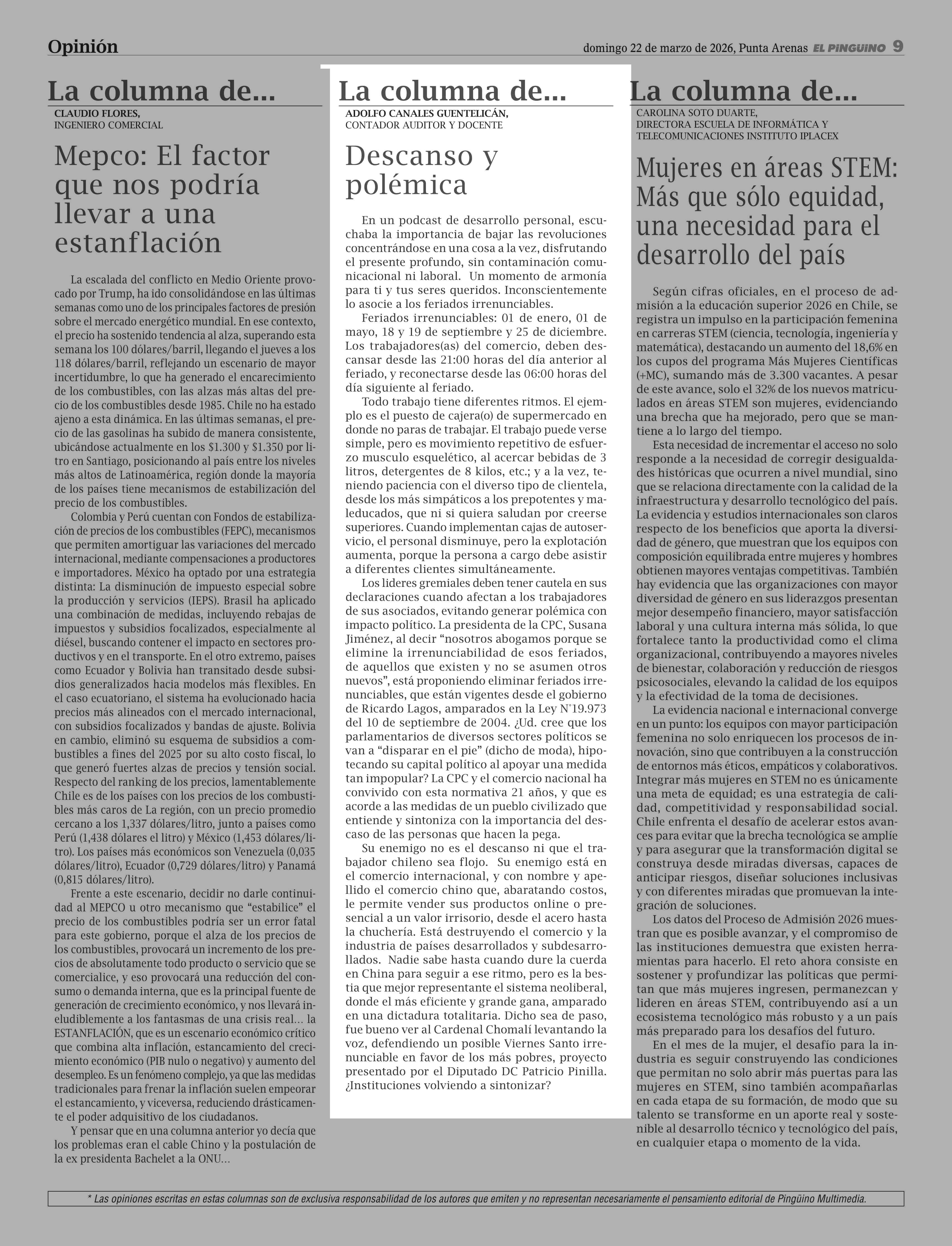 Fecha: 22-03-2026 Sector: Columnas de Opinión Región: Región de Magallanes y de la Antártica Chilena