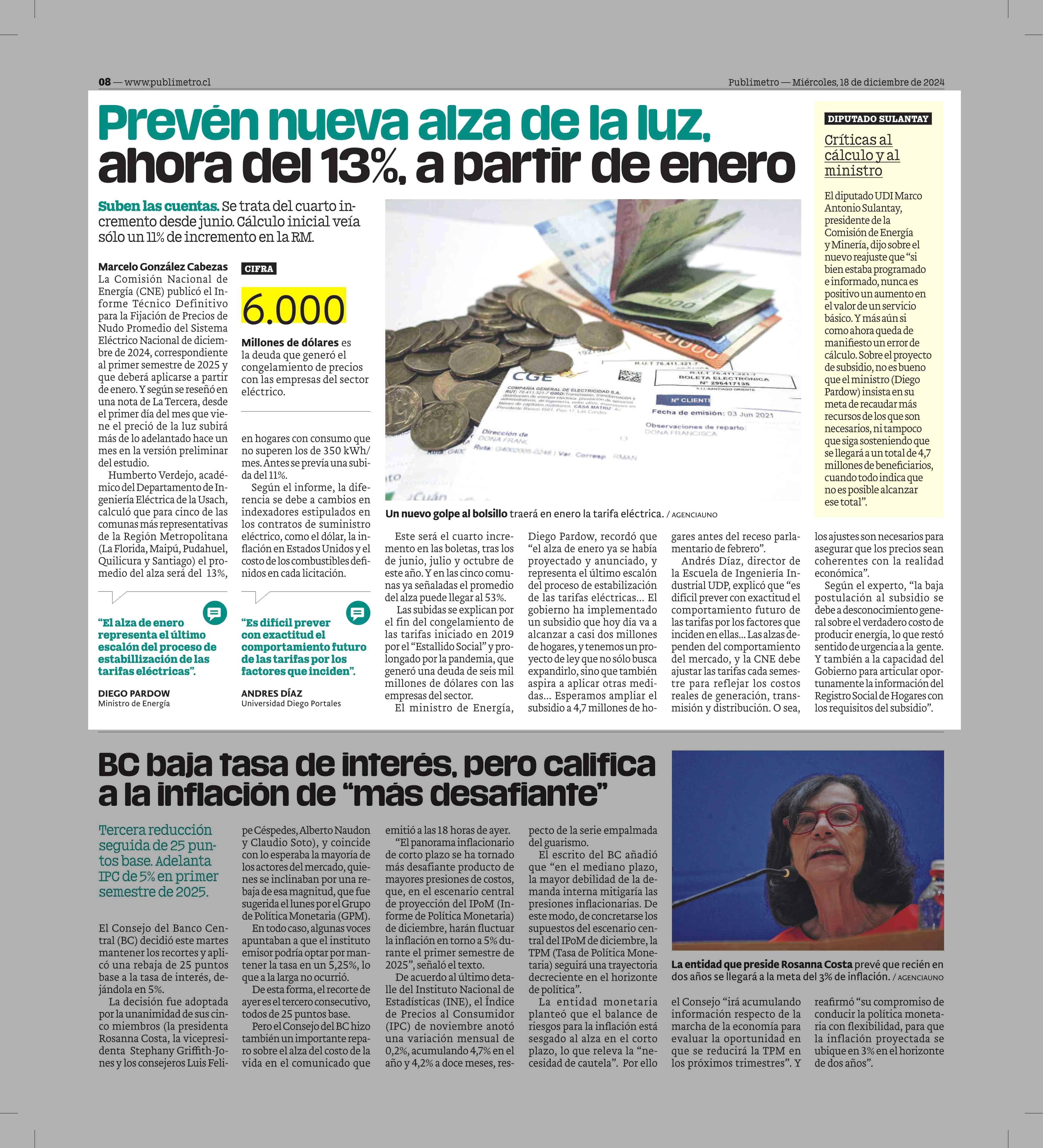 Título: Prevén nueva alza de la luz, ahora del 13%, a partir de enero