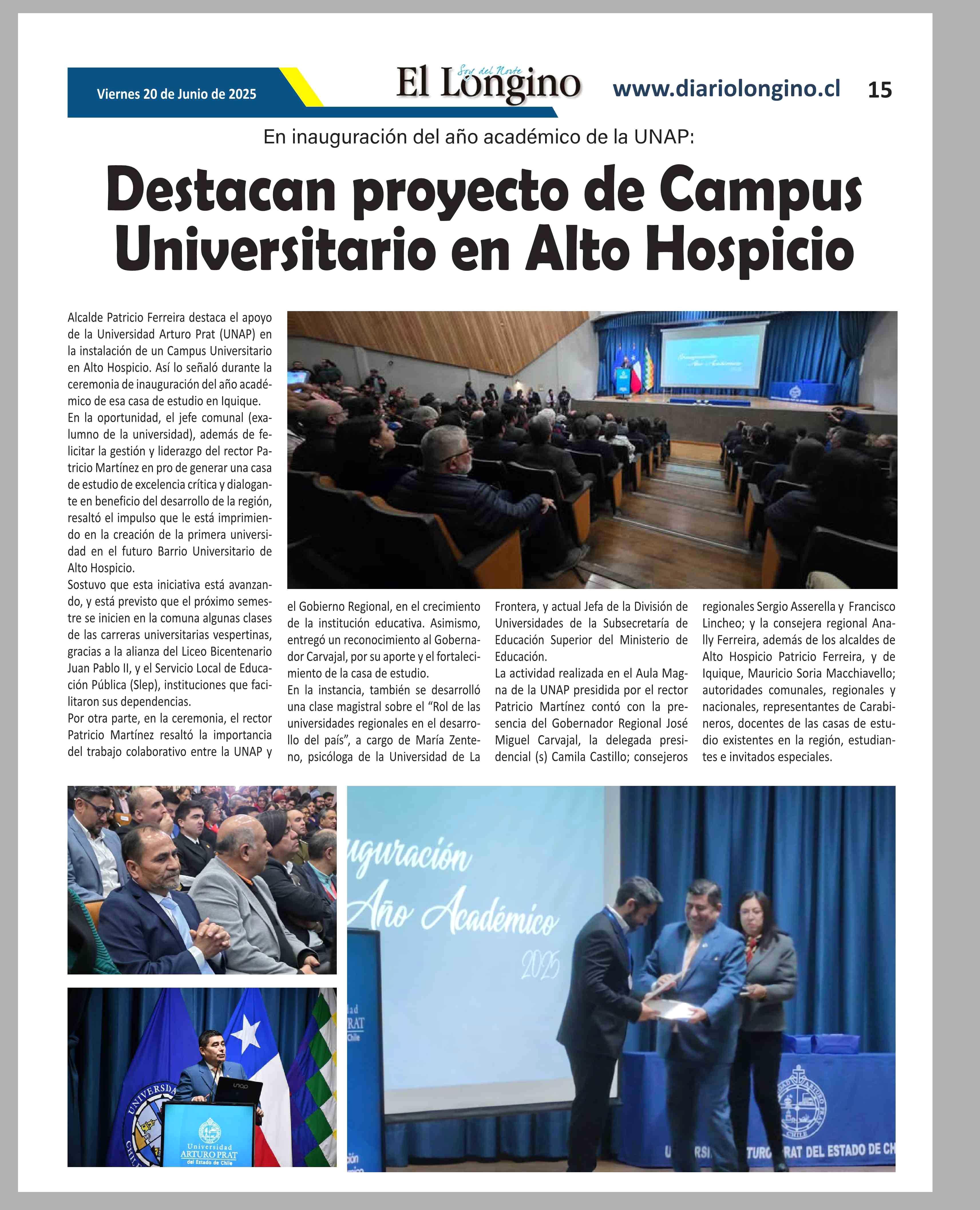 Destacan proyecto de Campus Universitario en Alto Hospicio 20-06-2025 El Longino |