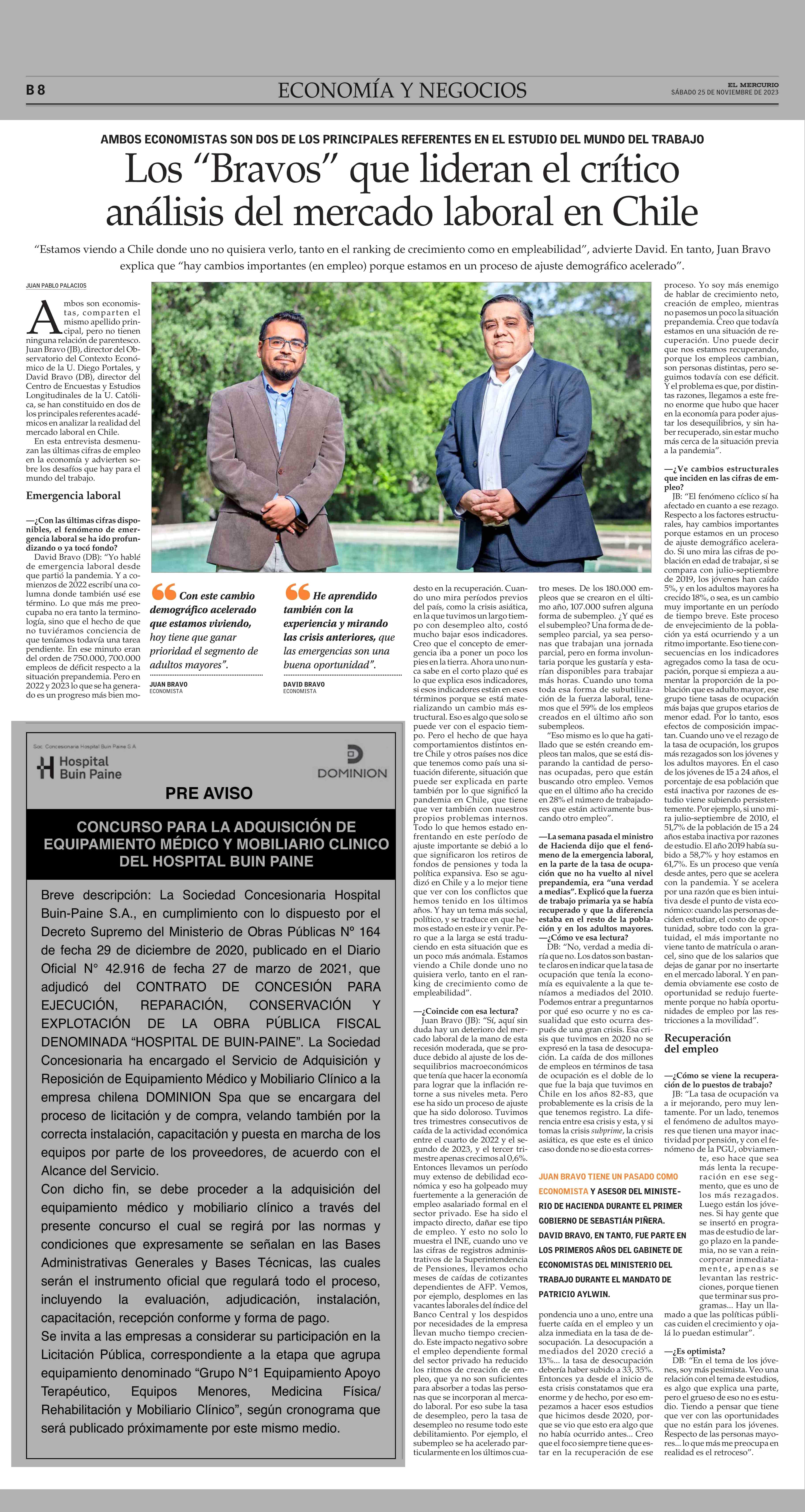 Los "Bravos" que lideran el crítico análisis del mercado laboral en Chile 25-11-2023 El Mercurio |