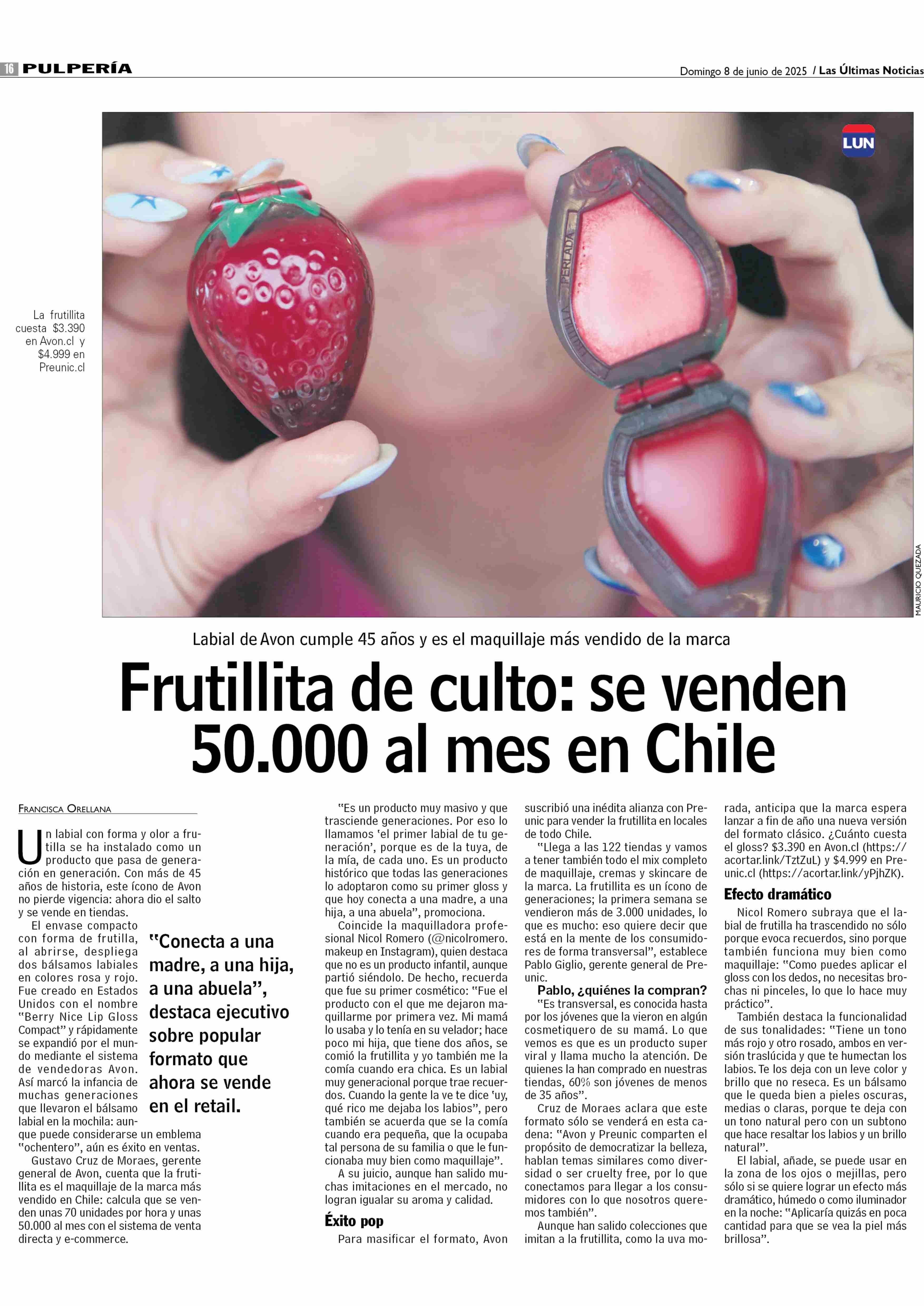 Frutillita de culto: se venden 530.000 al mes en Chile 08-06-2025 Las Últimas Noticias |