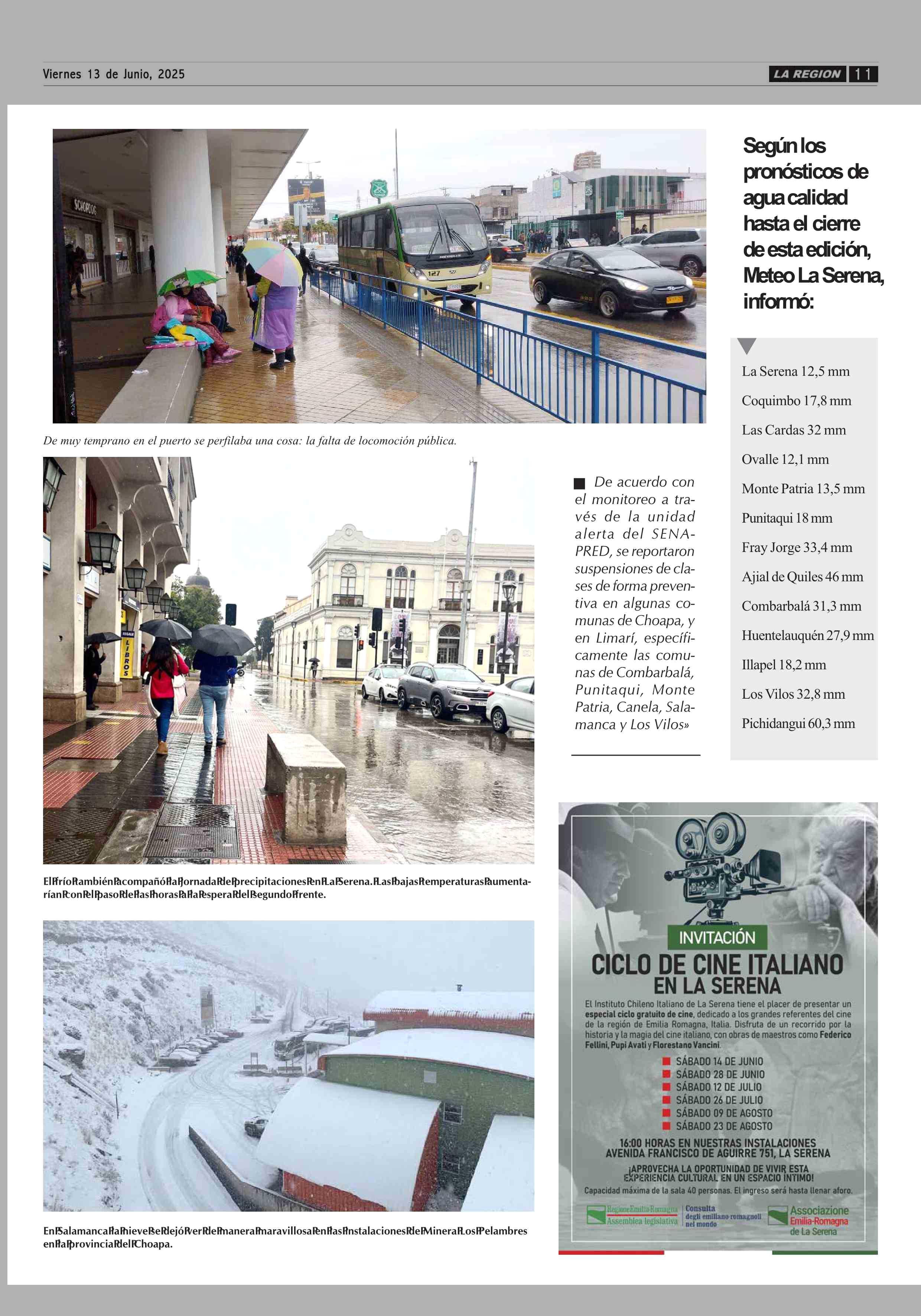 BENDITA LLUVIA , CON LOS PROBLEMAS DE SIEMPRE 13-06-2025 Diario la Región |
