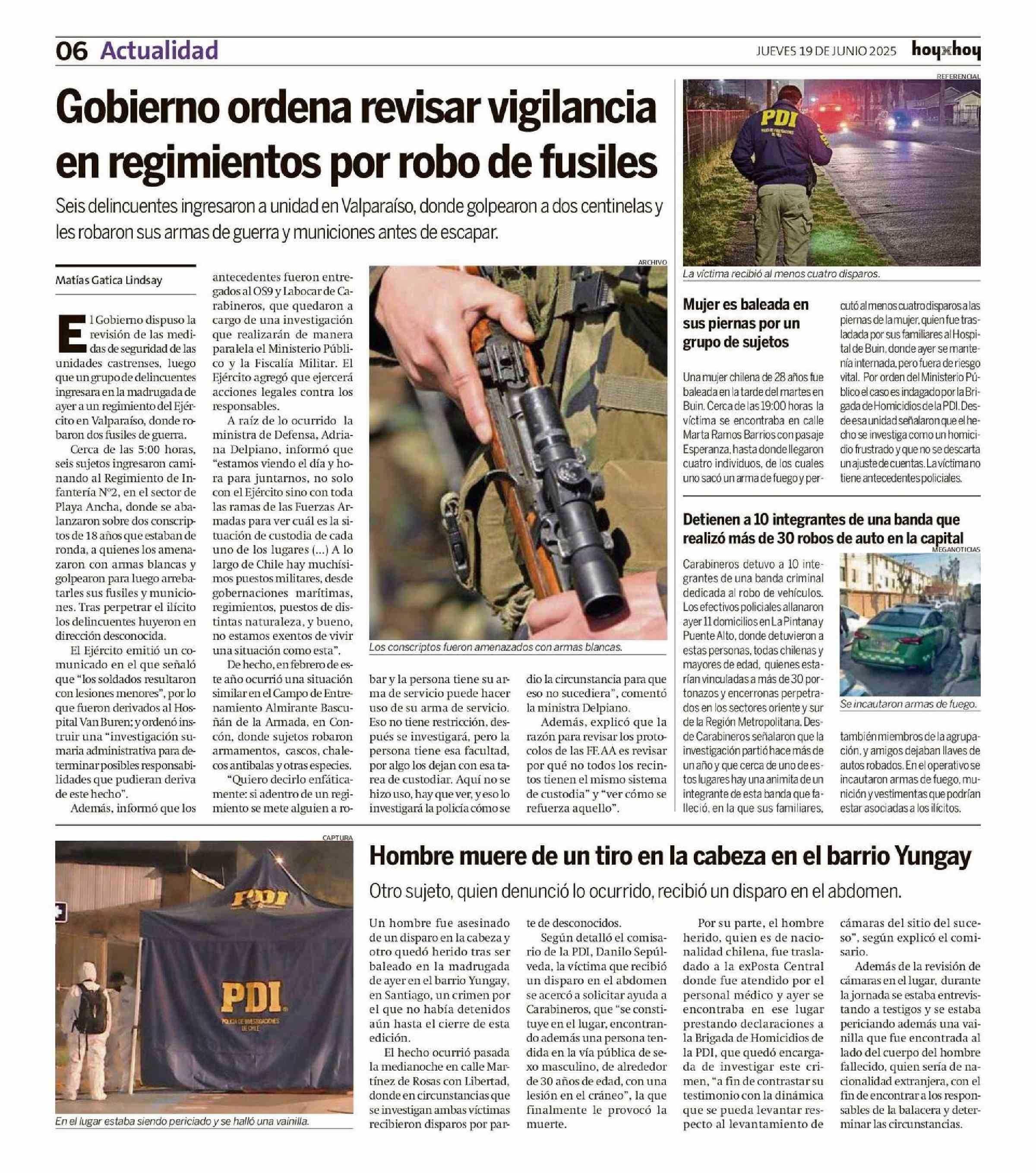 Gobierno ordena revisar vigilancia en regimientos por robo de fusiles 19-06-2025 Hoy x Hoy Concepción |