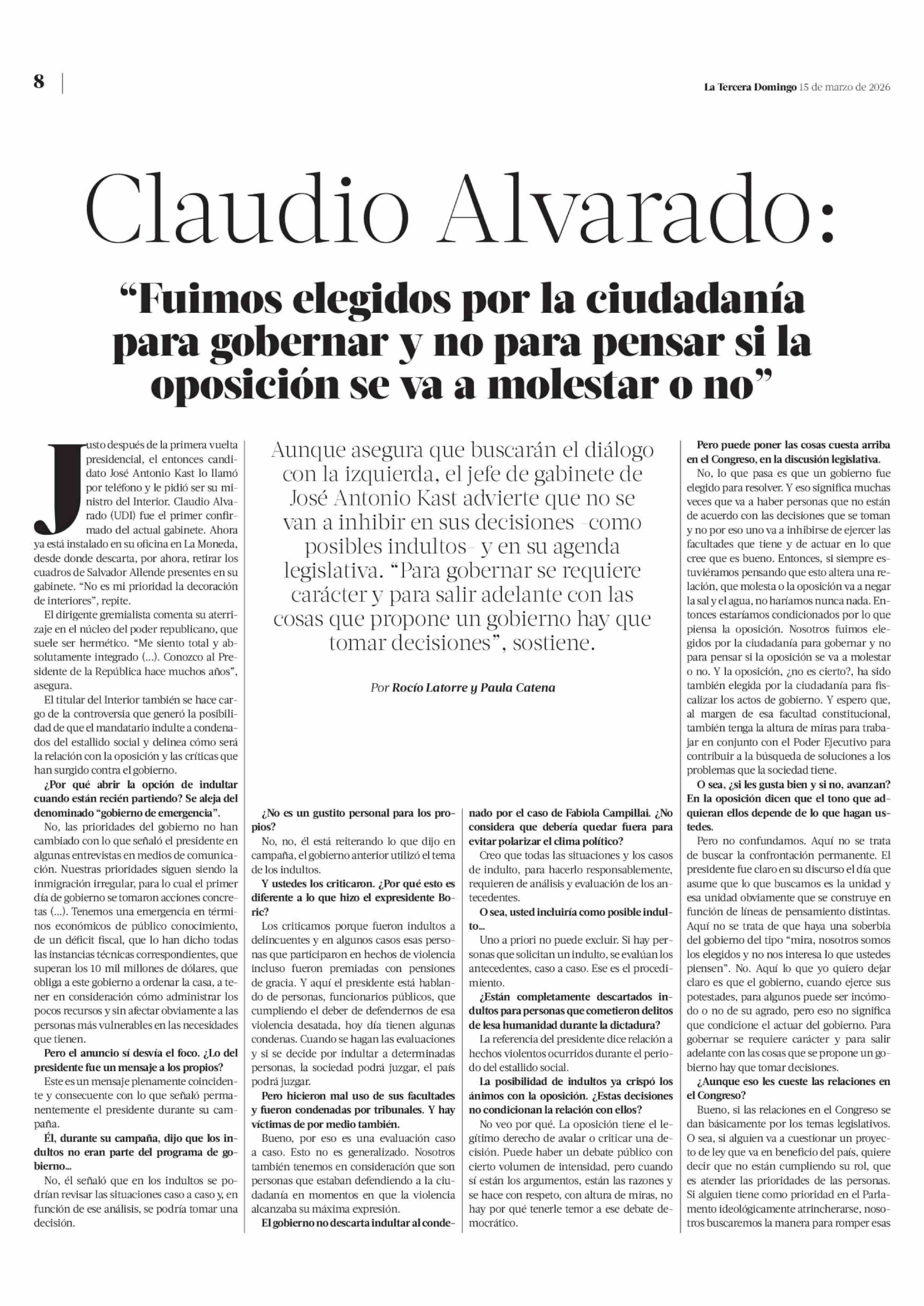 Claudio Alvarado: 15-03-2026 La Tercera |