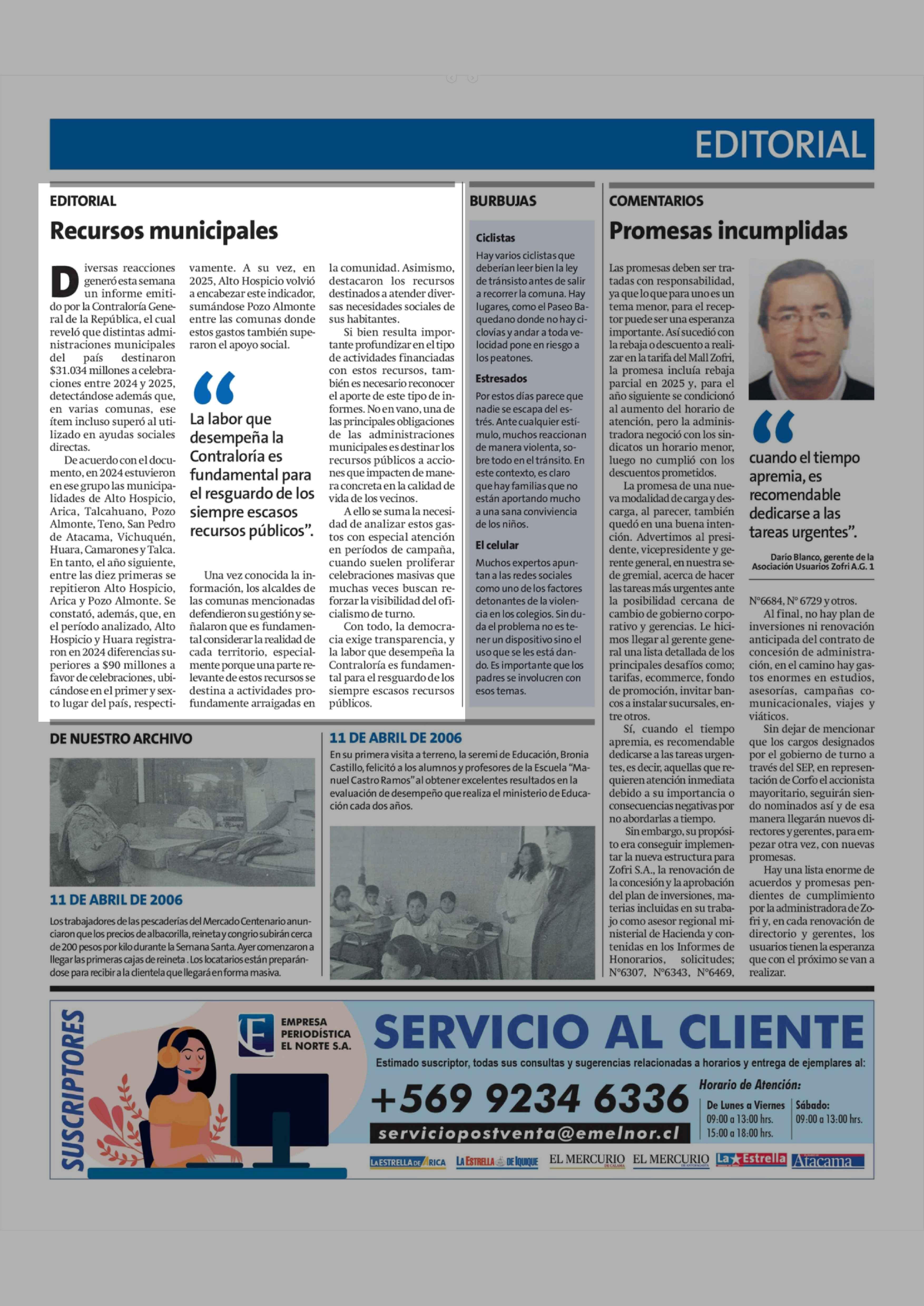 Editorial: Recursos municipales 11-04-2026 La Estrella de Iquique |