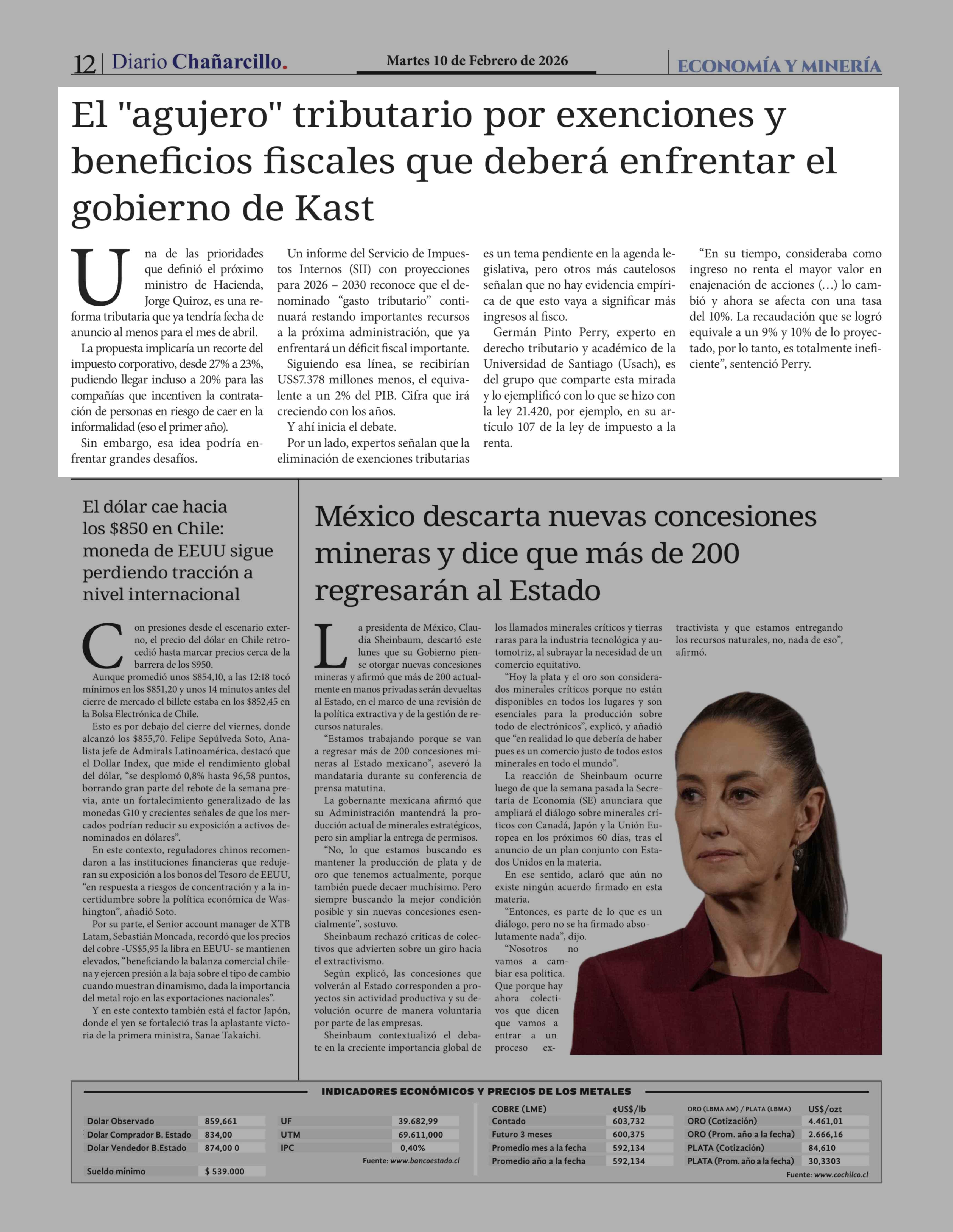 El "agujero" tributario por exenciones y beneficios fiscales que deberá enfrentar el gobierno de Kast 10-02-2026 Diario Chañarcillo |
