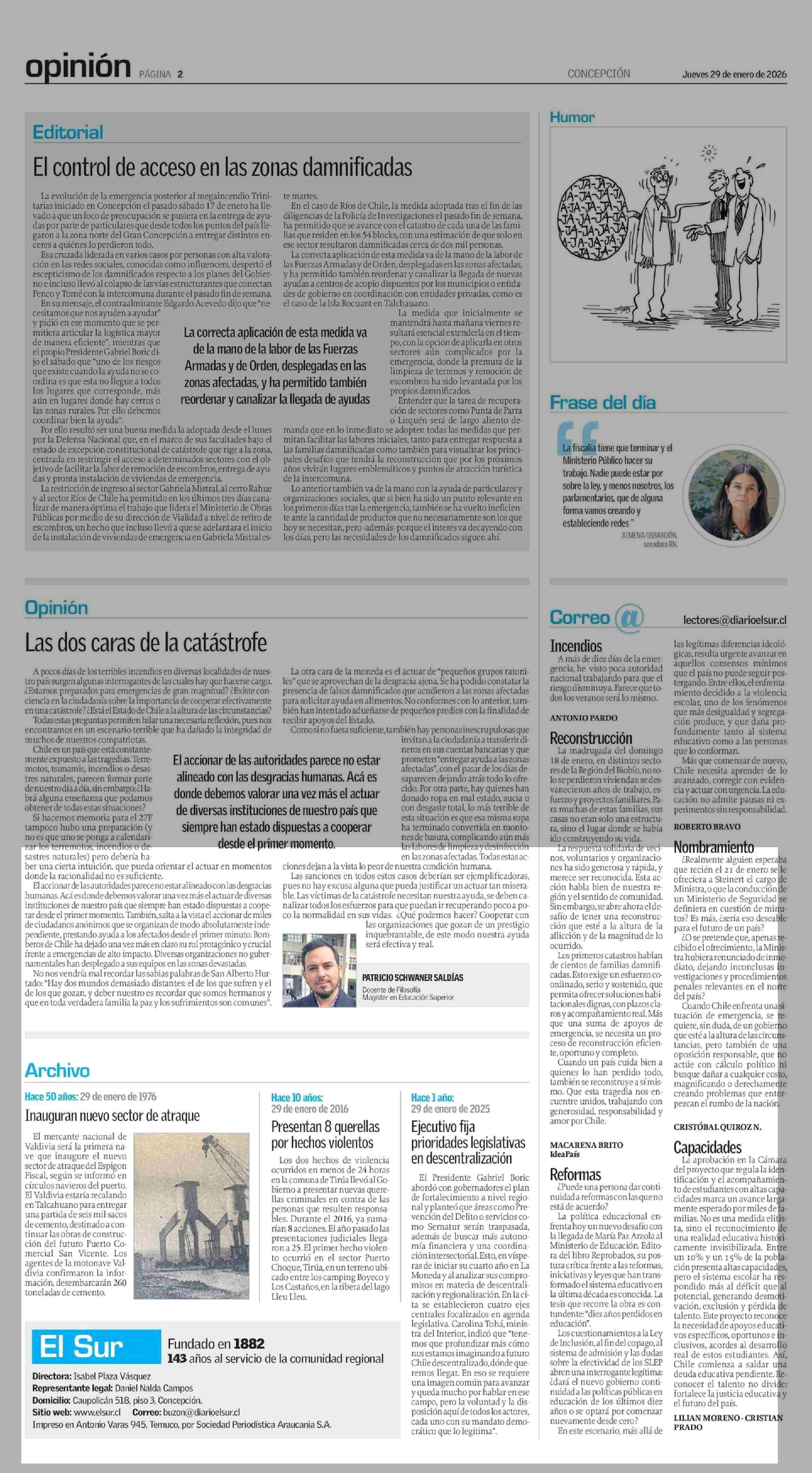 Fecha: 29-01-2026 Sector: Columnas de Opinión Región: Región del Bío-Bío