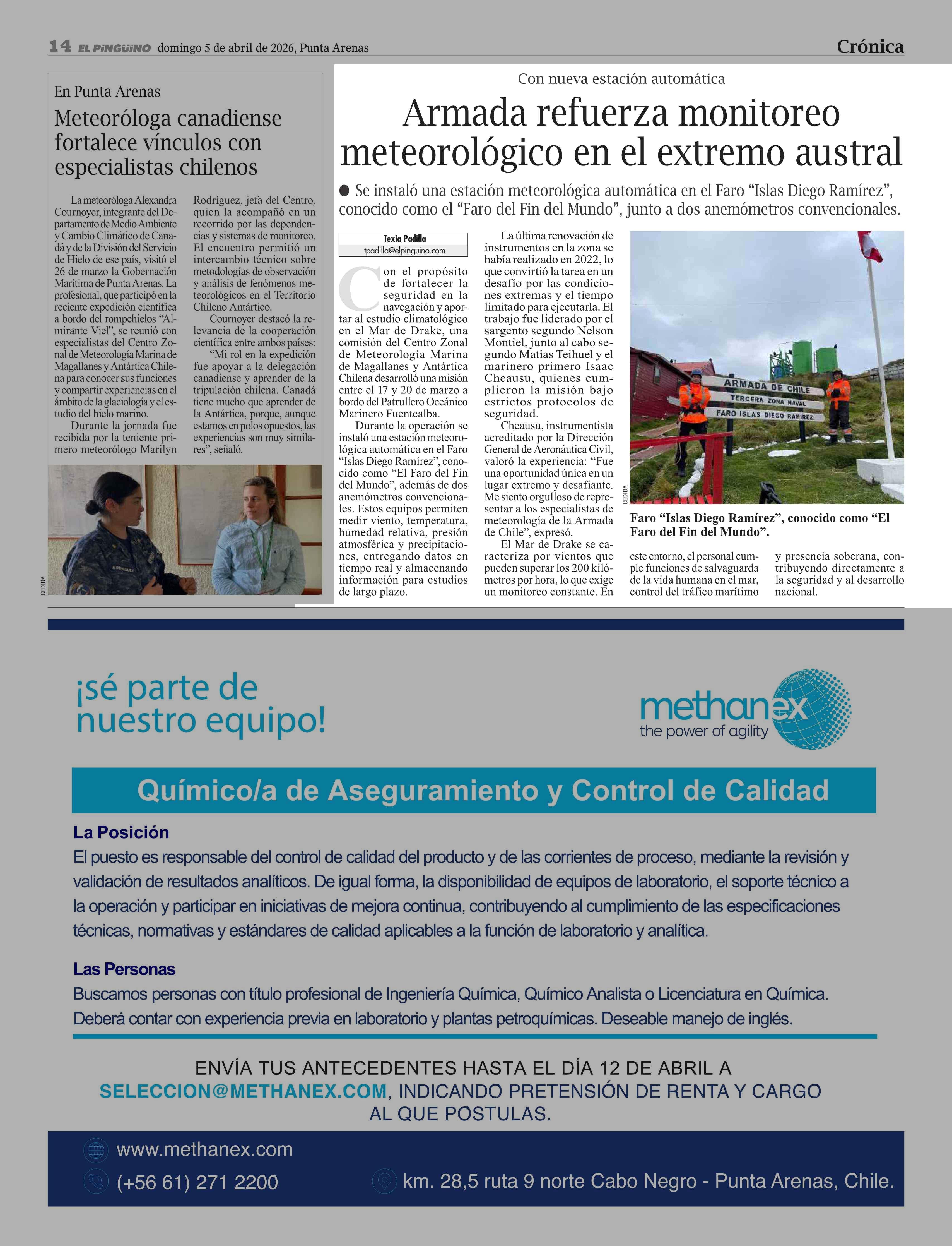 Armada refuerza monitoreo meteorológico en el extremo austral 05-04-2026 El Pingüino |