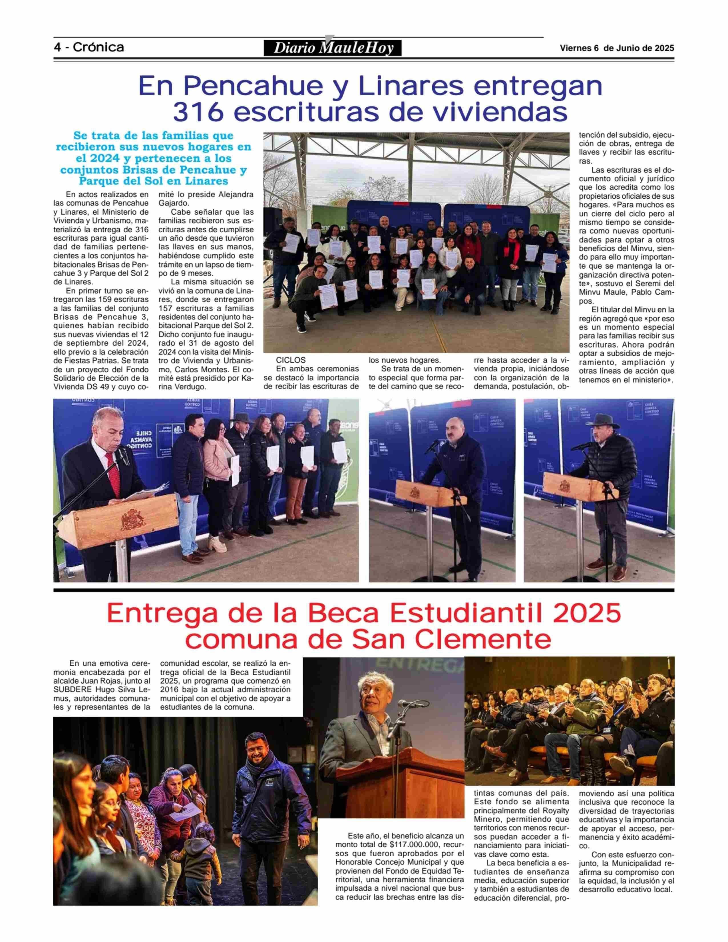 En Pencahue y Linares entregan 316 escrituras de viviendas 06-06-2025 Maule Hoy |