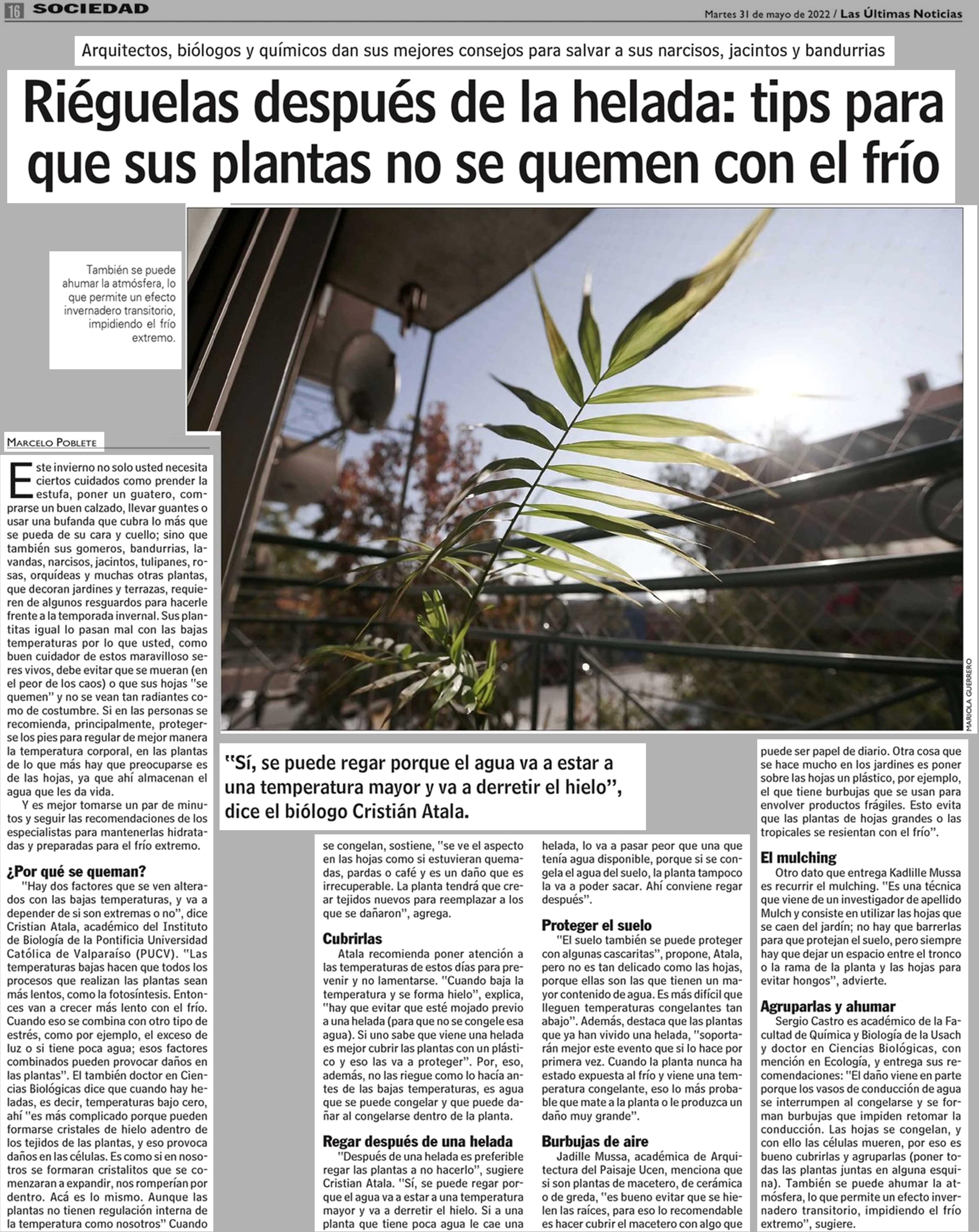 Riéguelas después de la helada: tips para que sus plantas no se quemen con el frio 31-05-2022 Las Últimas Noticias |