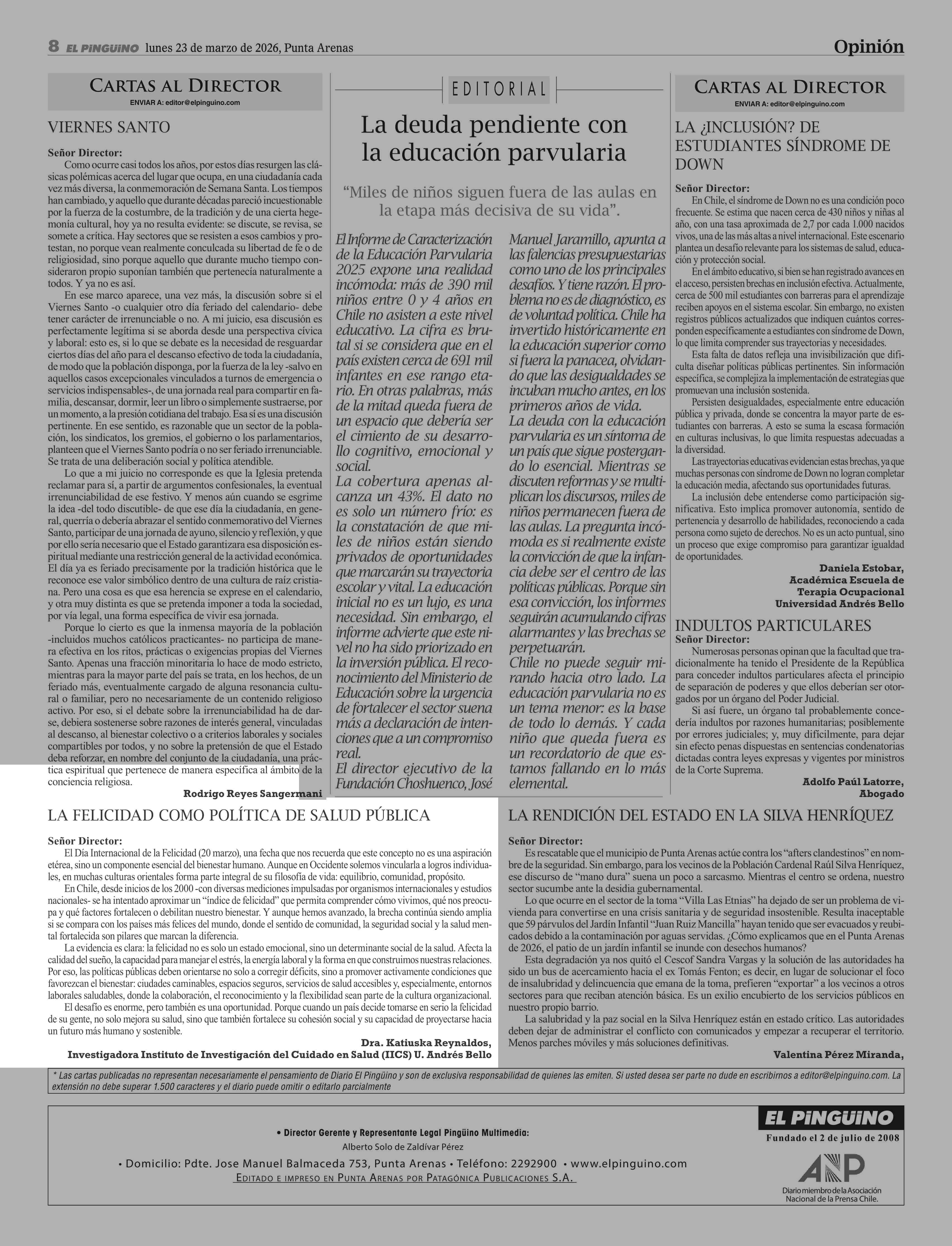 Fecha: 23-03-2026 Sector: Columnas de Opinión Región: Región de Magallanes y de la Antártica Chilena