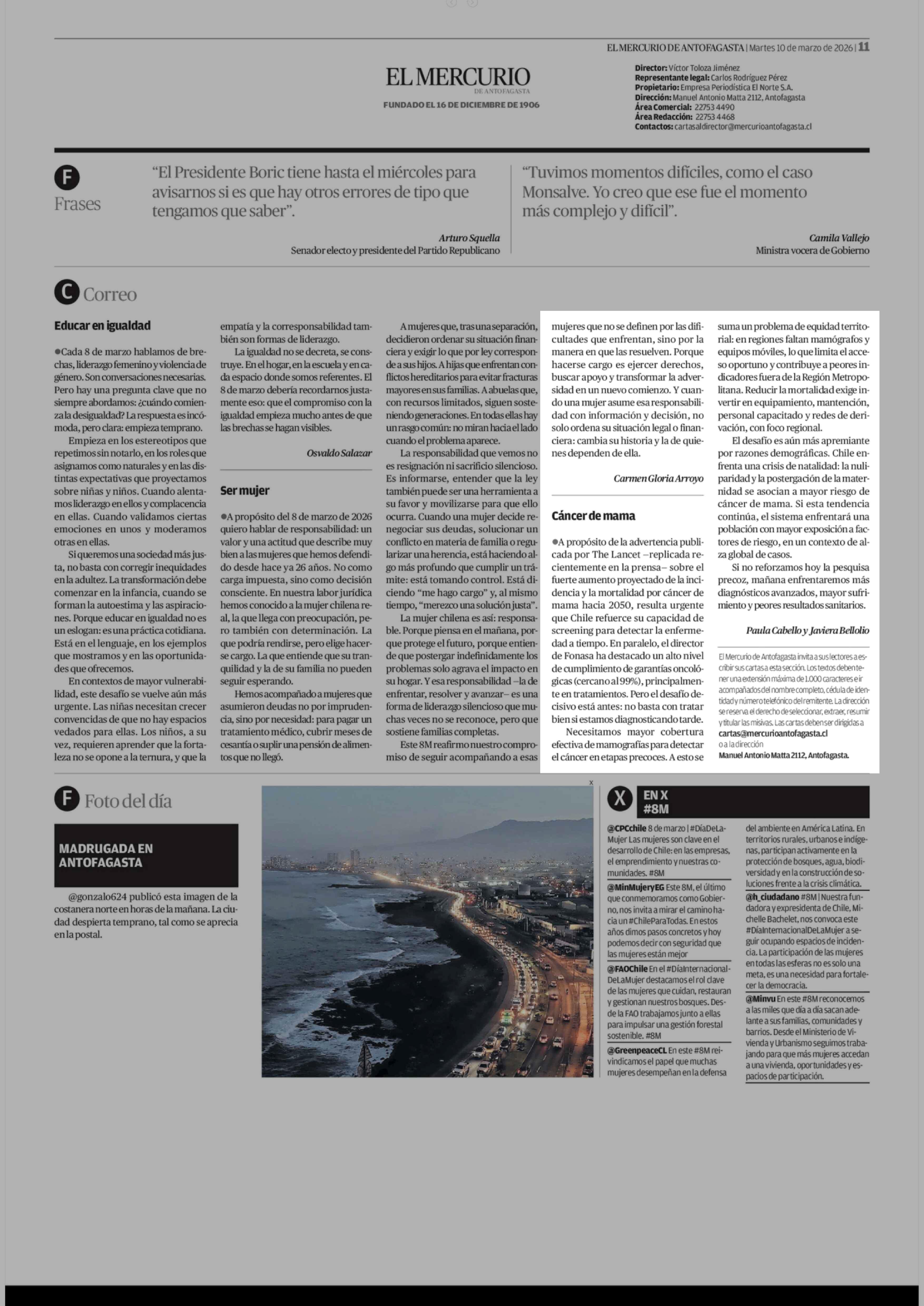 Cartas: Cáncer de mama 10-03-2026 El Mercurio de Antofagasta |