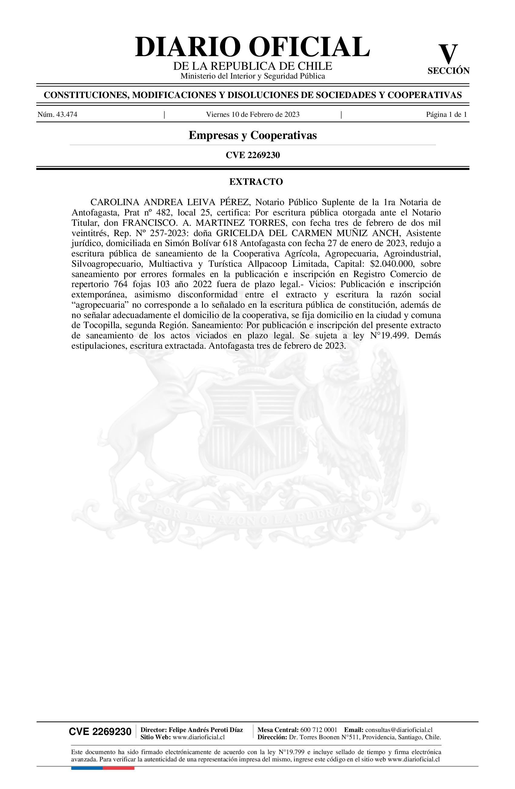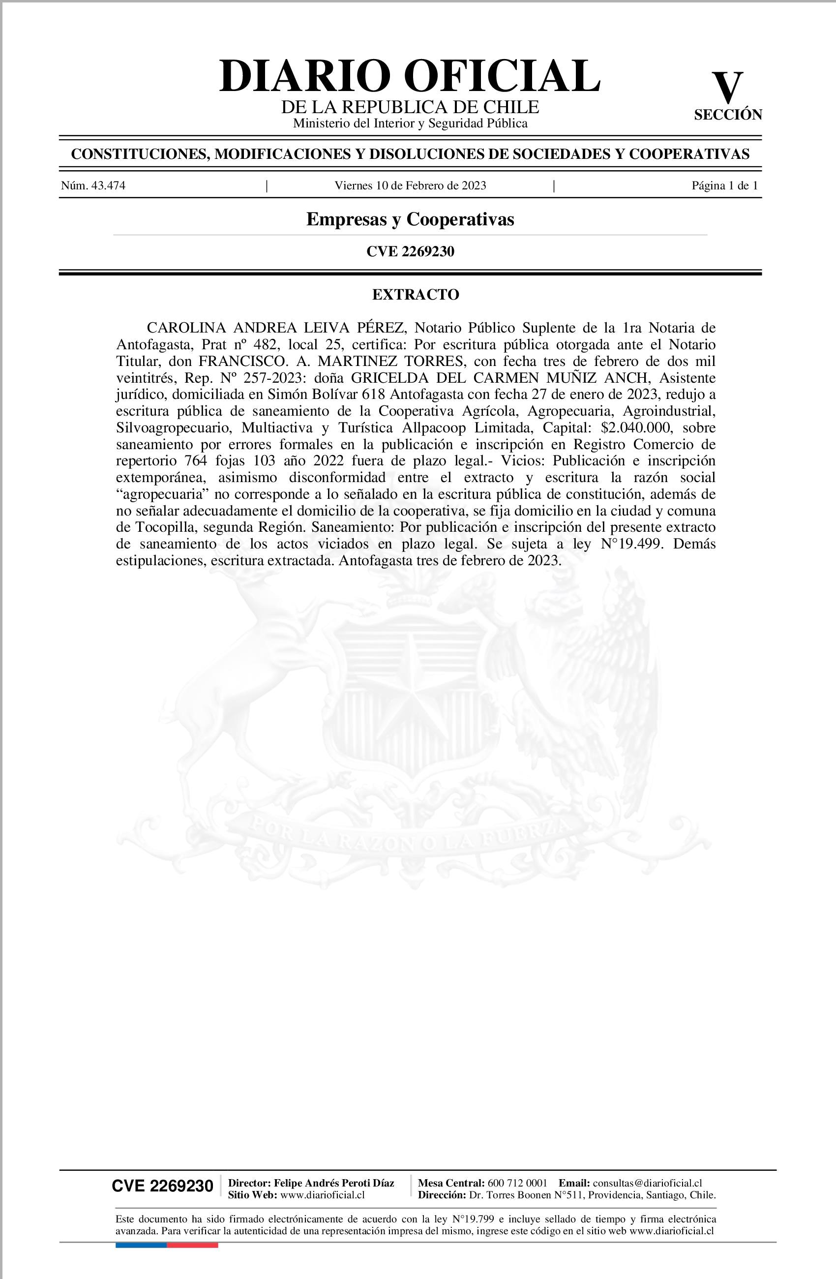 Extracto 10-02-2023 Diario Oficial Edición Electrónica |