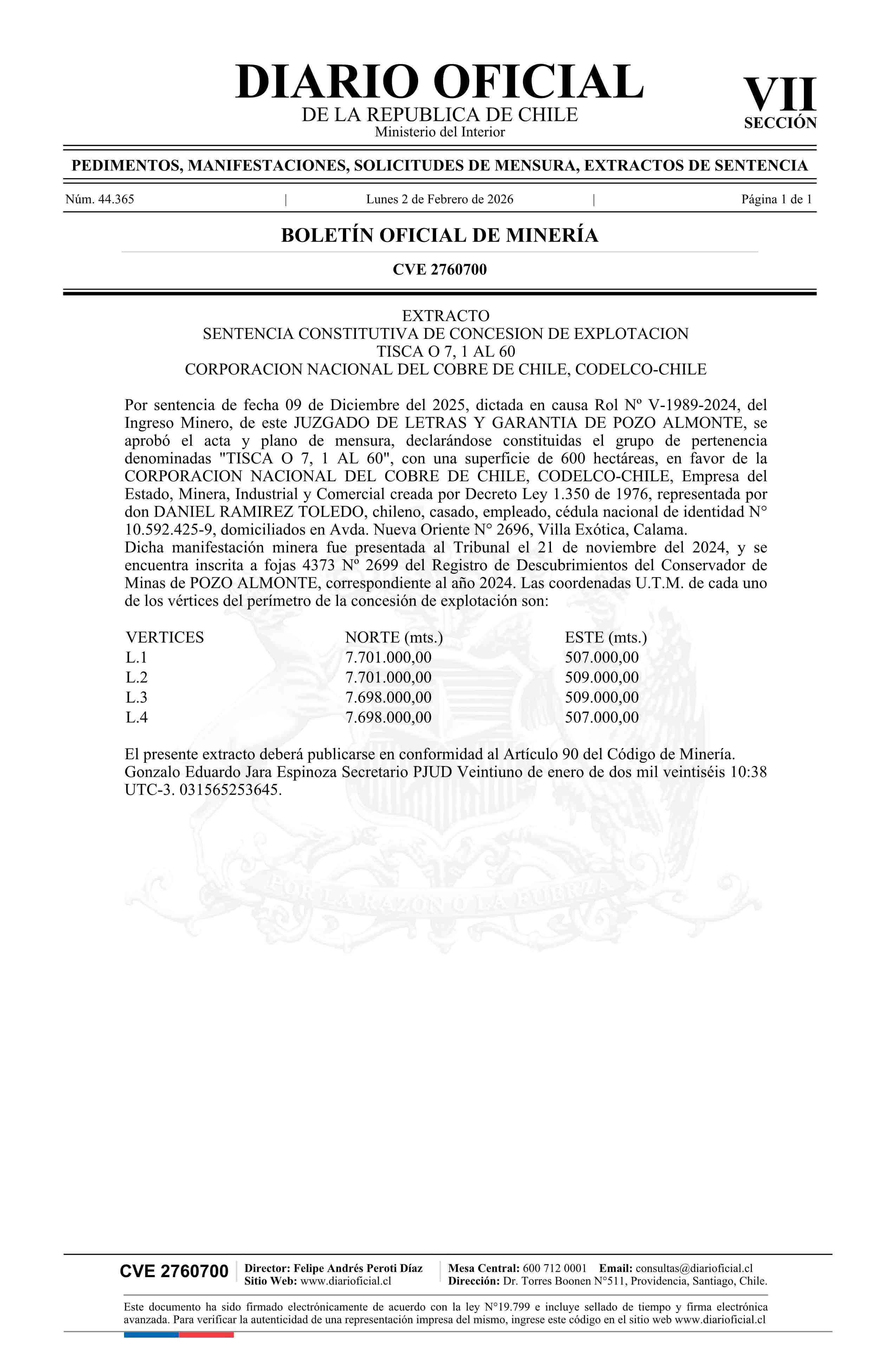 02-02-2026 DIARIO OFICIAL CHILE - BOLETÍN OFICIAL DE MINERÍA