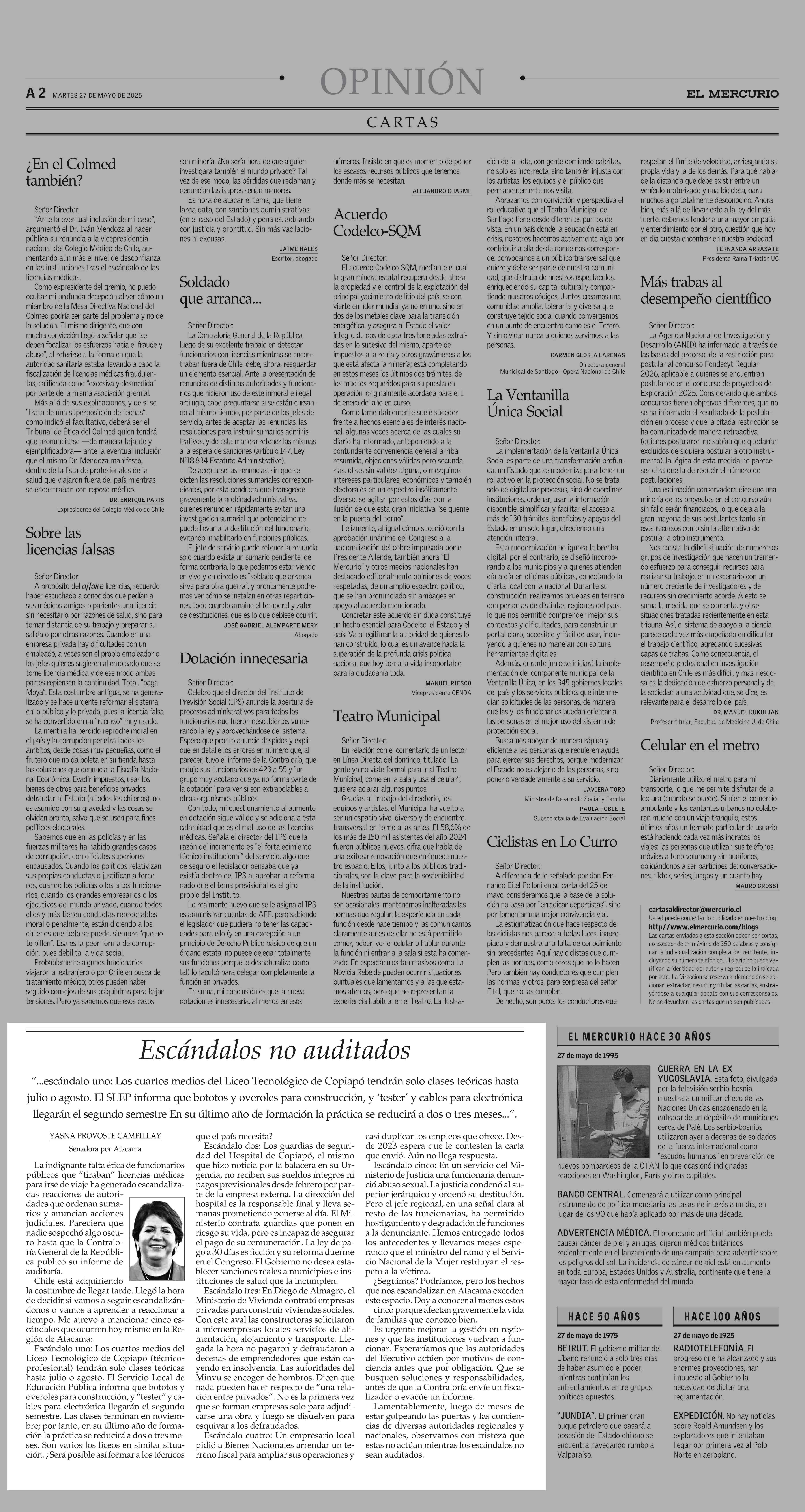 COLUMNAS DE OPINIÓN: Escándalos no auditados 27-05-2025 El Mercurio |
